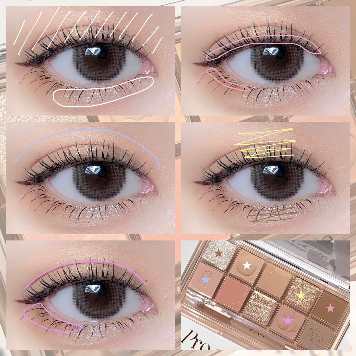 - ひとつのパレットにマット、シマー、グリッターなど多様な質感を贅沢に使用。塗る順序やカラーの組み合わせを変えるだけでデイリーメイクにも、特別な日のお出かけメイクにもできる優れもの。また粉飛びせず、まぶたにしっかり密着します。