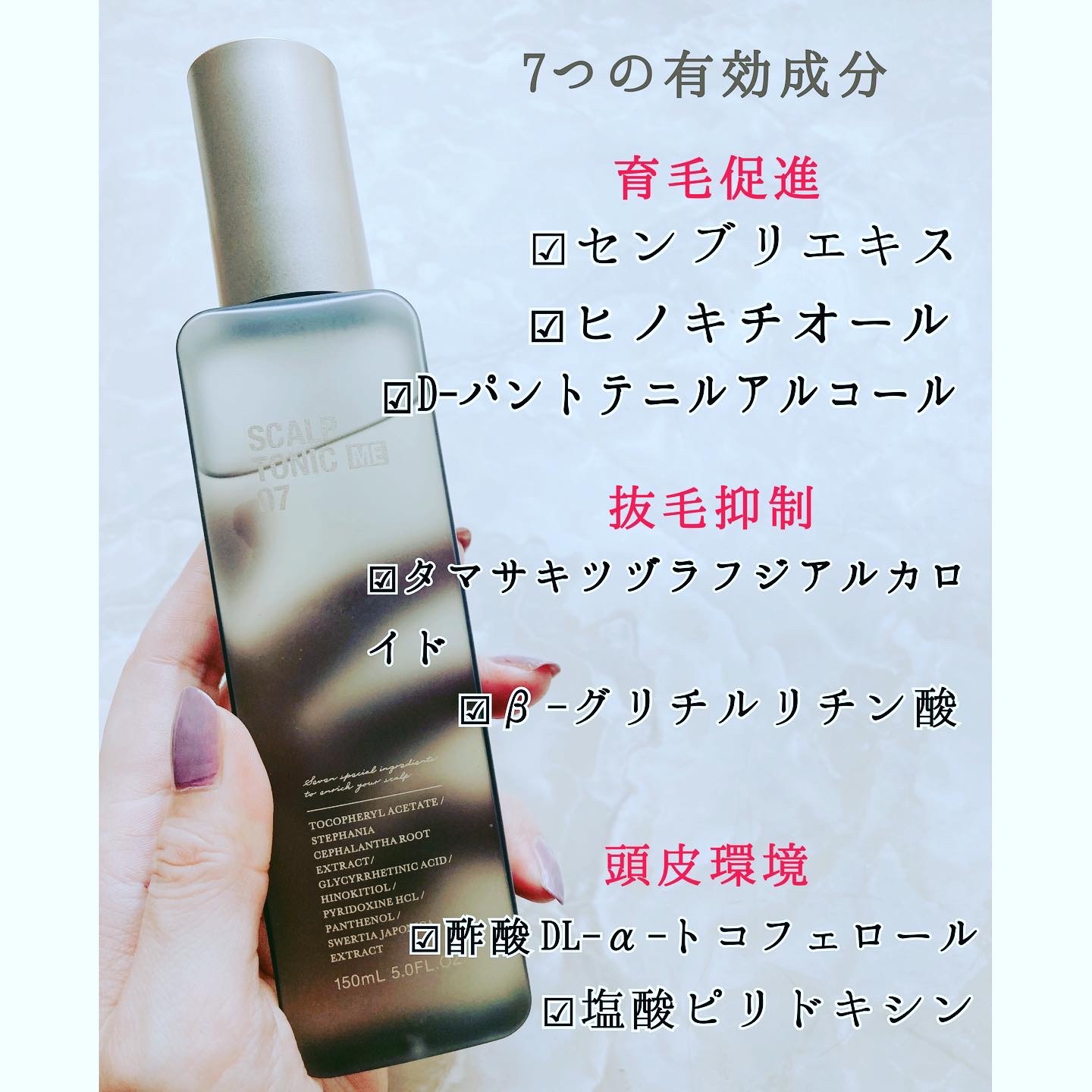 7つの有効成分を配合。植物由来の有効成分で抜け毛を防ぎ、育毛を促進します。 ドライヤーで髪の毛を乾かすとふんわりとシトラスムスクの香りが髪の毛にのります🌹✨ 美容専門学校をグループにもつ髪のプロが開発した育毛剤なので、信頼して使っています♪
