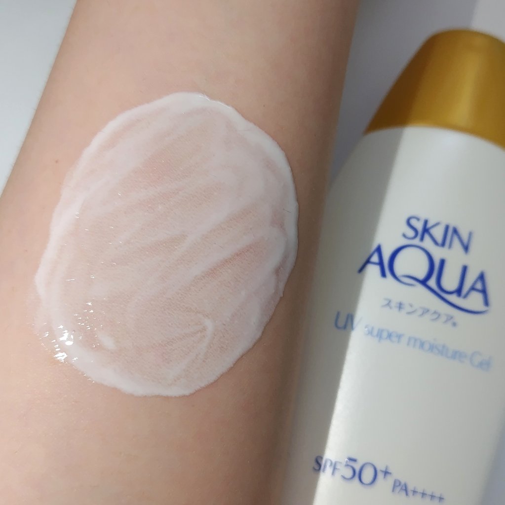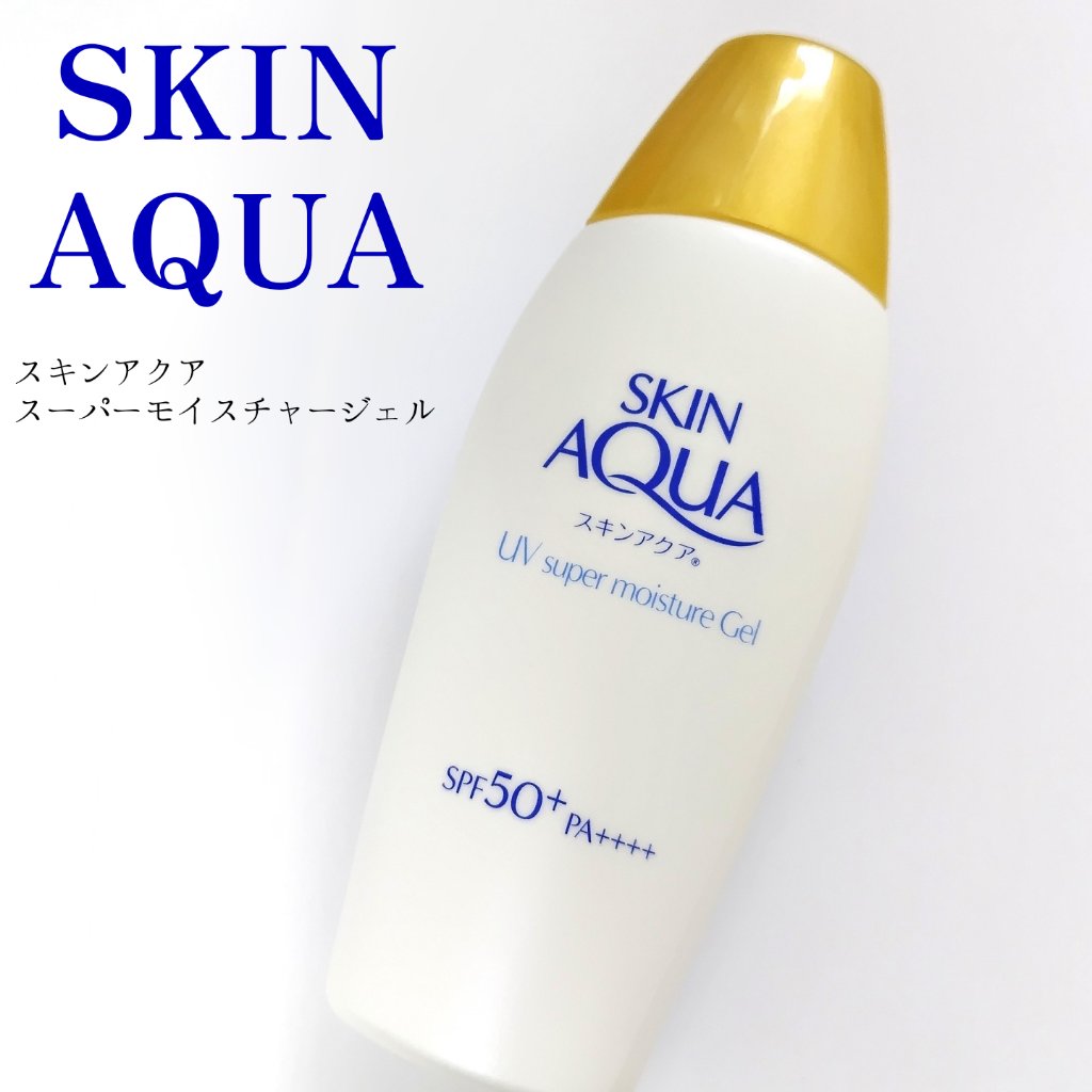 【スキンアクア】スーパーモイスチャージェルポンプタイプ購入しました。UV耐水性が書いてるので新しいバージョンかな?と思います。水のような軽いつけ心地で、ジェルタイプならではのうるおい感。顔にも身体にも使える万能UVで、SPF50+/PA+++...