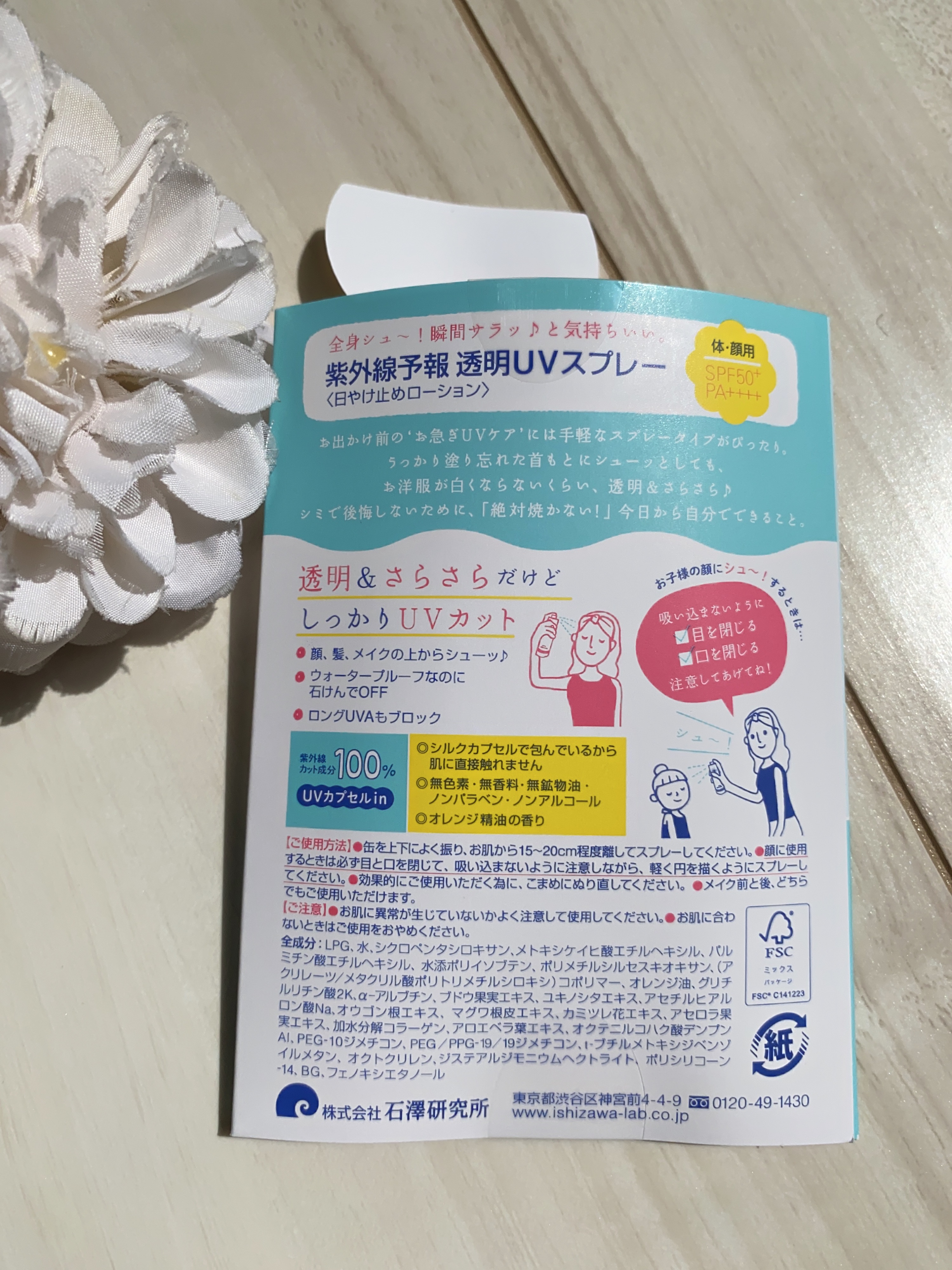 - シーズン限定発売 服や靴にかかってもOKなくらい※透明&さらさらなUVスプレー。 紫外線カット成分を100%シルクカプセルin!肌に直接触れません。 何度重ねても白くならず透明でベタつきにくいから、顔、髪、メイクの上からでも使えます。 ロングUVAもしっかりブロック。 汗・水・皮脂に強いウォータープルーフなのに石けんで落とせます。 家族みんなで楽しくUVケア♪1歳から使えます。 ・無色素、無香料、無鉱物油、ノンパラベン、ノンアルコール ・オレンジ精油の香り 【SPF50+ PA++++ UV 耐水性★★】 ※衣類用ではありません。衣類の素材によってはシミになることがありますのでご注意ください。