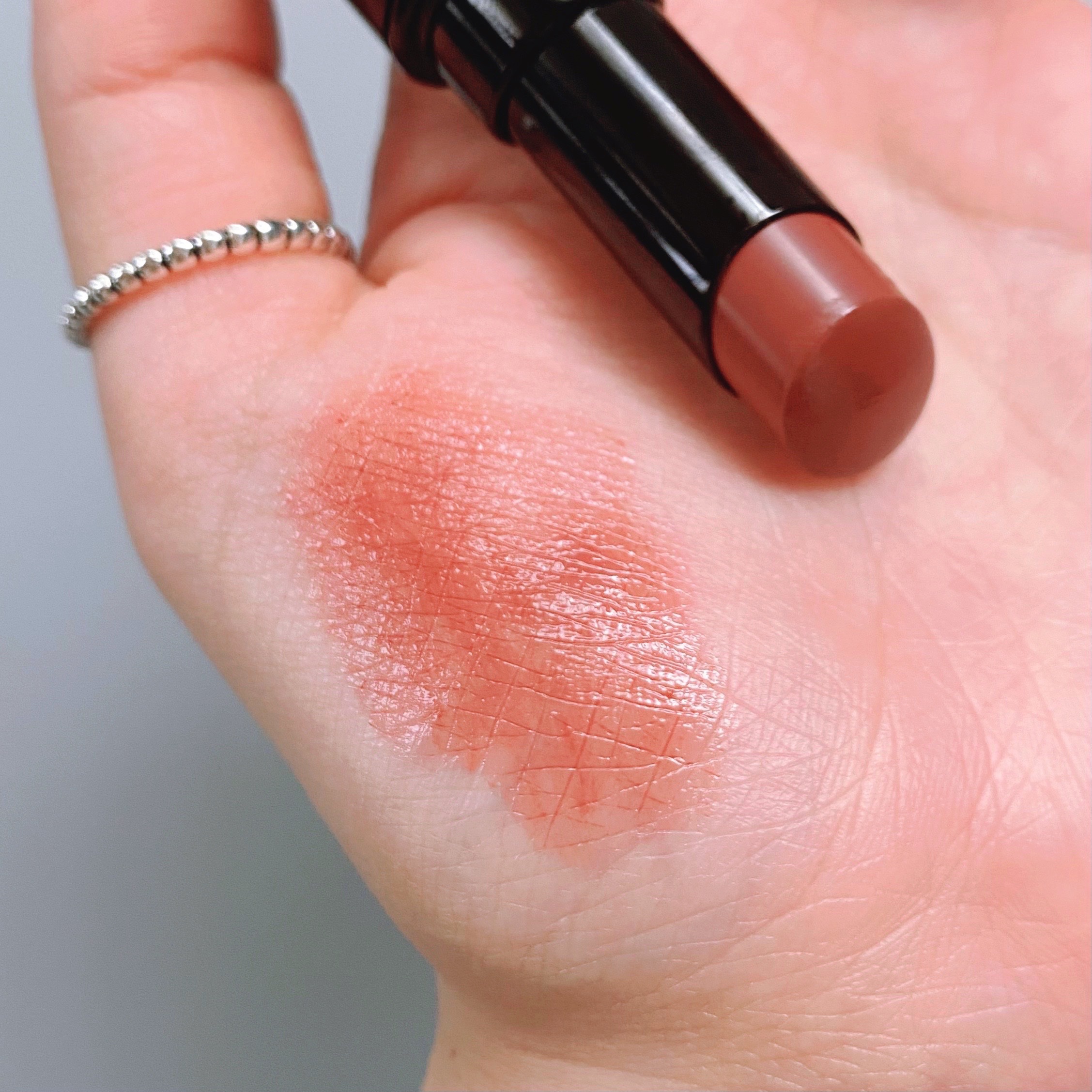 温かみのあるローズブラウン🥀 自然な血色感が出て、肌なじみも良いです 肌から浮かないナチュラルなツヤ感 するする塗れて保湿力も高い ピタッと密着してくれるので、ツヤ系のリップの中ではモチも良い方◎ バニラの香りが強いので苦手な方は要注意です⚠️