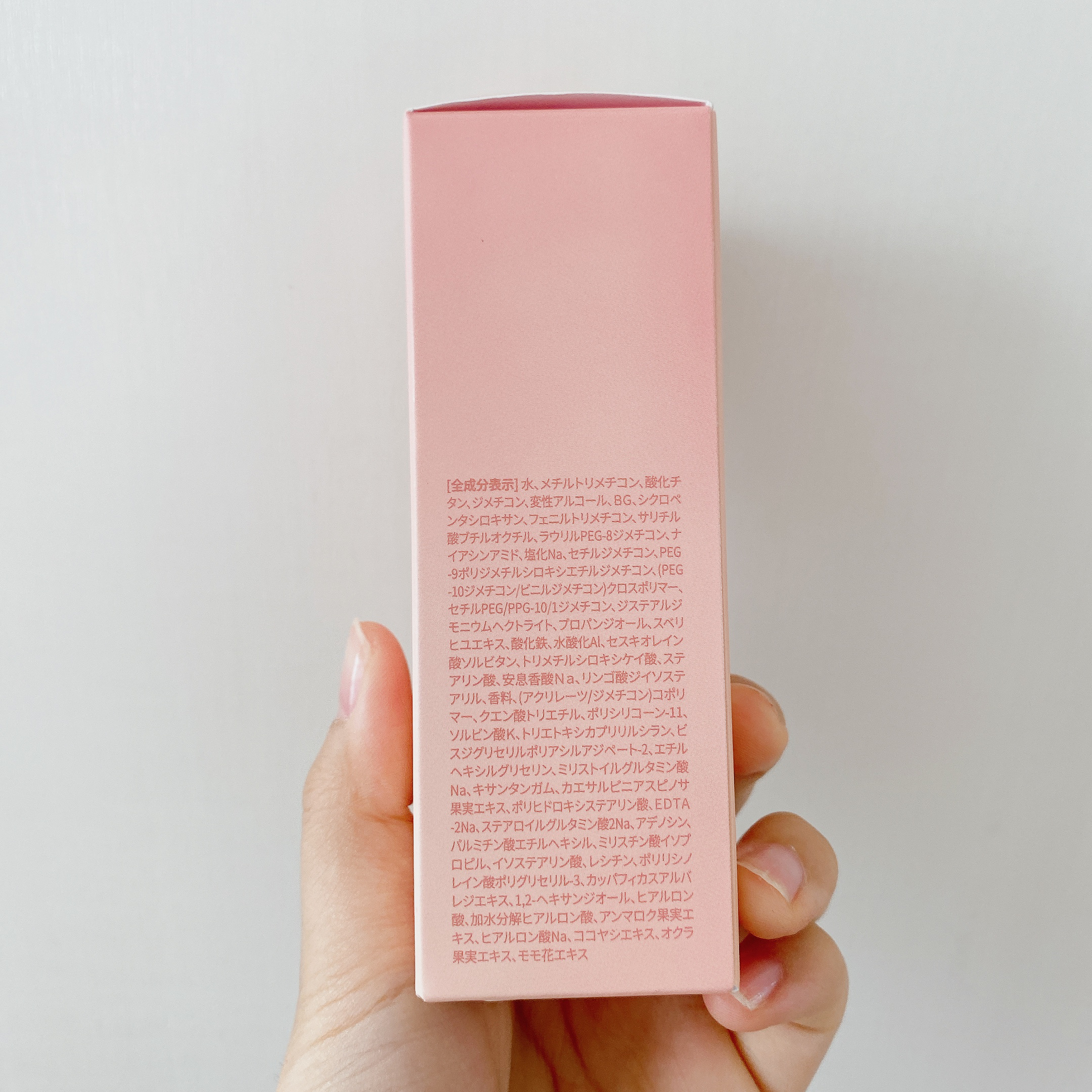 - <ベージュ> 水、メチルトリメチコン、酸化チタン、ジメチコン、変性アルコール、BG、シクロペンタシロキサン、フェニルトリメチコン、サリチル酸ブチルオクチル、ラウリルPEG-8ジメチコン、ナイアシンアミド、塩化Na、セチルジメチコン、PEG-9ポリジメチルシロキシエチルジメチコン、(PEG-10ジメチコン/ビニルジメチコン)クロスポリマー、セチルPEG/PPG-10/1ジメチコン、ジステアルジモニウムヘクトライト、プロパンジオール、スベリヒユエキス、酸化鉄、水酸化Al、セスキオレイン酸ソルビタン、トリメチルシロキシケイ酸、ステアリン酸、安息香酸Na、リンゴ酸ジイソステアリル、香料、(アクリレーツ/ジメチコン)コポリマー、クエン酸トリエチル、ポリシリコーン-11、ソルビン酸K、トリエトキシカプリリルシラン、ビスジグリセリルポリアシルアジペート-2、エチルヘキシルグリセリン、ミリストイルグルタミン酸Na、キサンタンガム、カエサルピニアスピノサ果実エキス、ポリヒドロキシステアリン酸、EDTA-2Na、ステアロイルグルタミン酸2Na、アデノシン、パルミチン酸エチルヘキシル、ミリスチン酸イソプロピル、イソステアリン酸、レシチン、ポリリシノレイン酸ポリグリセリル-3、カッパフィカスアルバレジエキス、1,2-ヘキサンジオール、ヒアルロン酸、加水分解ヒアルロン酸、アンマロク果実エキス、ヒアルロン酸Na、ココヤシエキス、オクラ果実エキス、モモ花エキス <ミント> 水、シクロペンタシロキサン、ジメチコン、変性アルコール、サリチル酸ブチルオクチル、BG、フェニルトリメチコン、アジピン酸ジブチル、ラウリルPEG-8ジメチコン、メチルトリメチコン、ナイアシンアミド、プロパンジオール、塩化Na、セチルジメチコン、PEG-9ポリジメチルシロキシエチルジメチコン、(PEG-10ジメチコン/ビニルジメチコン)クロスポリマー、セチルPEG/PPG-10/1ジメチコン、アクリレーツコポリマー、水酸化Al、ベンゾトリアゾリルドデシルp-クレゾール、ステアリン酸、スベリヒユエキス、ジステアルジモニウムヘクトライト、セスキオレイン酸ソルビタン、トリメチルシロキシケイ酸、香料、(アクリレーツ/ジメチコン)コポリマー、カプリル酸グリセリル、トリエトキシカプリリルシラン、ビスジグリセリルポリアシルアジペート-2、ミリストイルグルタミン酸Na、クエン酸トリエチル、キサンタンガム、エチルヘキシルグリセリン、ポリシリコーン-11、アデノシン、エチレンジアミンジコハク酸3Na、カエサルピニアスピノサ果実エキス、ヒアルロン酸、加水分解ヒアルロン酸、アンマロク果実エキス、ヒアルロン酸Na、1,2-ヘキサンジオール、カッパフィカスアルバレジエキス、ココヤシエキス、オクラ果実エキス、テトラ(ジ-t-ブチルヒドロキシヒドロケイヒ酸)ペンタエリスリチル <br> [+/-]酸化チタン、酸化クロム、酸化鉄、カオリン、グンジョウ、フランスラベンダーエキス、ミズハッカエキス <ラベンダー> 水、シクロペンタシロキサン、ジメチコン、変性アルコール、サリチル酸ブチルオクチル、BG、フェニルトリメチコン、アジピン酸ジブチル、ラウリルPEG-8ジメチコン、メチルトリメチコン、ナイアシンアミド、プロパンジオール、塩化Na、セチルジメチコン、PEG-9ポリジメチルシロキシエチルジメチコン、(PEG-10ジメチコン/ビニルジメチコン)クロスポリマー、セチルPEG/PPG-10/1ジメチコン、アクリレーツコポリマー、水酸化Al、ベンゾトリアゾリルドデシルp-クレゾール、ステアリン酸、スベリヒユエキス、ジステアルジモニウムヘクトライト、セスキオレイン酸ソルビタン、トリメチルシロキシケイ酸、香料、(アクリレーツ/ジメチコン)コポリマー、カプリル酸グリセリル、トリエトキシカプリリルシラン、ビスジグリセリルポリアシルアジペート-2、ミリストイルグルタミン酸Na、クエン酸トリエチル、キサンタンガム、エチルヘキシルグリセリン、ポリシリコーン-11、アデノシン、エチレンジアミンジコハク酸3Na、カエサルピニアスピノサ果実エキス、ヒアルロン酸、加水分解ヒアルロン酸、アンマロク果実エキス、ヒアルロン酸Na、1,2-ヘキサンジオール、カッパフィカスアルバレジエキス、ココヤシエキス、オクラ果実エキス、テトラ(ジ-t-ブチルヒドロキシヒドロケイヒ酸)ペンタエリスリチル <br> [+/-]酸化チタン、酸化クロム、酸化鉄、カオリン、グンジョウ、フランスラベンダーエキス、ミズハッカエキス