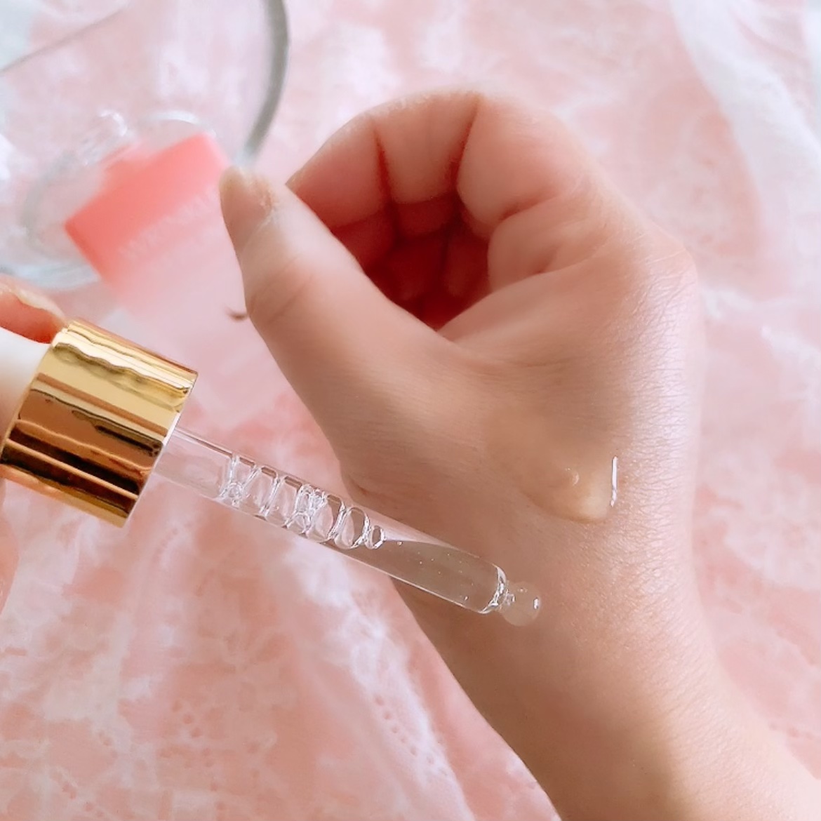 黄味がかったとろんと濃厚なテクスチャーに 期待が高まりますね。 濃厚ですがするすると伸び広がりながら ベタつきなく馴染みます。 第3のレチノールでキメを整えながら エイジングケア*¹していきます。