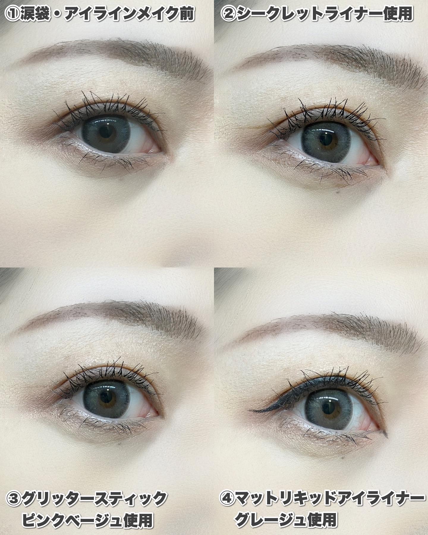 リキッドアイライナーは肌になじみやすいマット仕上がり 🎀グリッターは涙袋、アイシャドウ、ハイライトとマルチに使える コシのあるブラシで、かすれずに描きやすく発色もいいです!マット処方なのでテカらないので、ペンシルで描いたような仕上がりに😌 スルスルと滑らかな描き心地。ラメはザラザラせず肌あたりがいいです✨✨