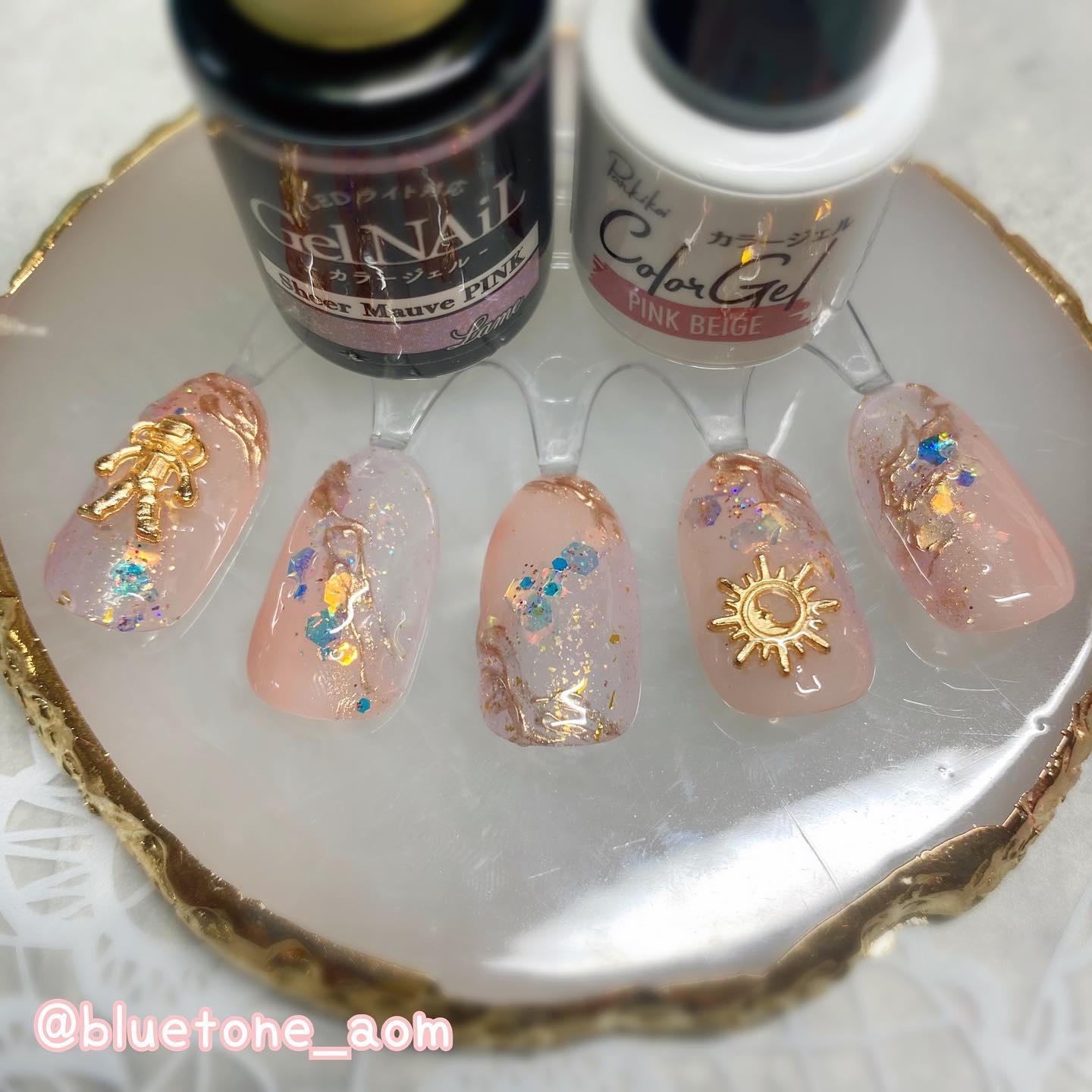ラメがしっかりしてるし クリアカラーが入ってるから オーロラパウダー無しでも 充分キラキラしました! 反射強めのフィルムなので 実物はもっと うるうるとキラキラが強いです! ビー玉みたい🥺 ネイルシール長持ちさせたいけど ちょっと飽きてきたな〜って時とかに 全然違った印象になるのでオススメです! Seriaのベースジェル 本当にうるうるネイルしやすいので オススメしたい🙆♀️