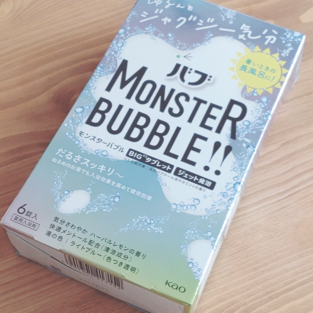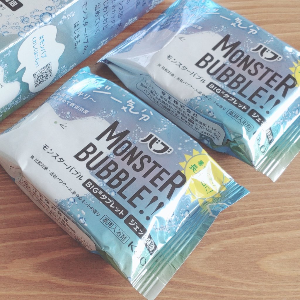 モンスターバブルから新商品が登場⭐ ぬるめのお湯でも入浴効果を高めて疲労回復、だるさスッキリ👍🏻 従来品より大きめのBIGタブレット*でジェット発泡🫧 気分さわやかハーバルレモンの香り🍋 こちらキレイなライトブルーのお湯💙 メントール入りなのでスーッとしていて夏でも長湯できる処方とのこと☺ 私湯船につかってYouTube見たりすることが多いので大活躍してくれそう✨ 夏場でも入浴剤を使えるって良い💓💓 すっごくオススメなので気になった方はぜひ購入してみてくださいね♡
