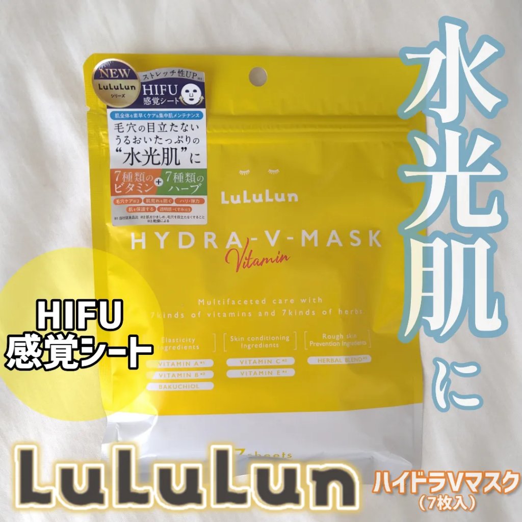 - ルルルンからビタミンたっぷりの化粧水フェイスマスクが新登場。 7種類のビタミン※1と7種類のハーブ※1で肌全体を素早くケア&集中肌メンテナンス。 新開発のフェイスラインに密着するシートで肌を引き締めながら肌のすみずみ※2までうるおいで満たし、毛穴の目立たないうるおいたっぷりの“水光肌”へ。 (※1 全て保湿成分として ※2 角質層まで)