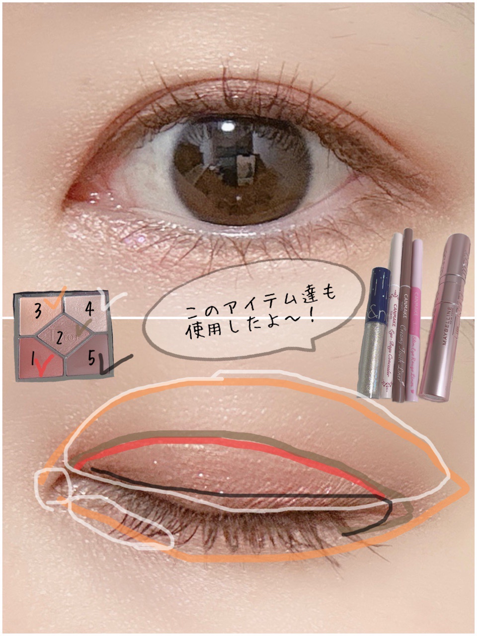 予想以上に可愛くて使いやすくて 高いけど買ってよかったって思えた パレット😊✨✨ 適当に塗っても変にならず綺麗に仕上がるから コツいらずだなって思います❣️ 肌から色が浮かず馴染むので 普段使いにもお出かけにも使えて 1番手に取ることが多くなりそうです🥰 右下以外は柔らかい発色です🔆 右下を先に二重幅に塗って後は 適当に瞼に重ねていく方法が ナチュラルめに仕上がり簡単です。