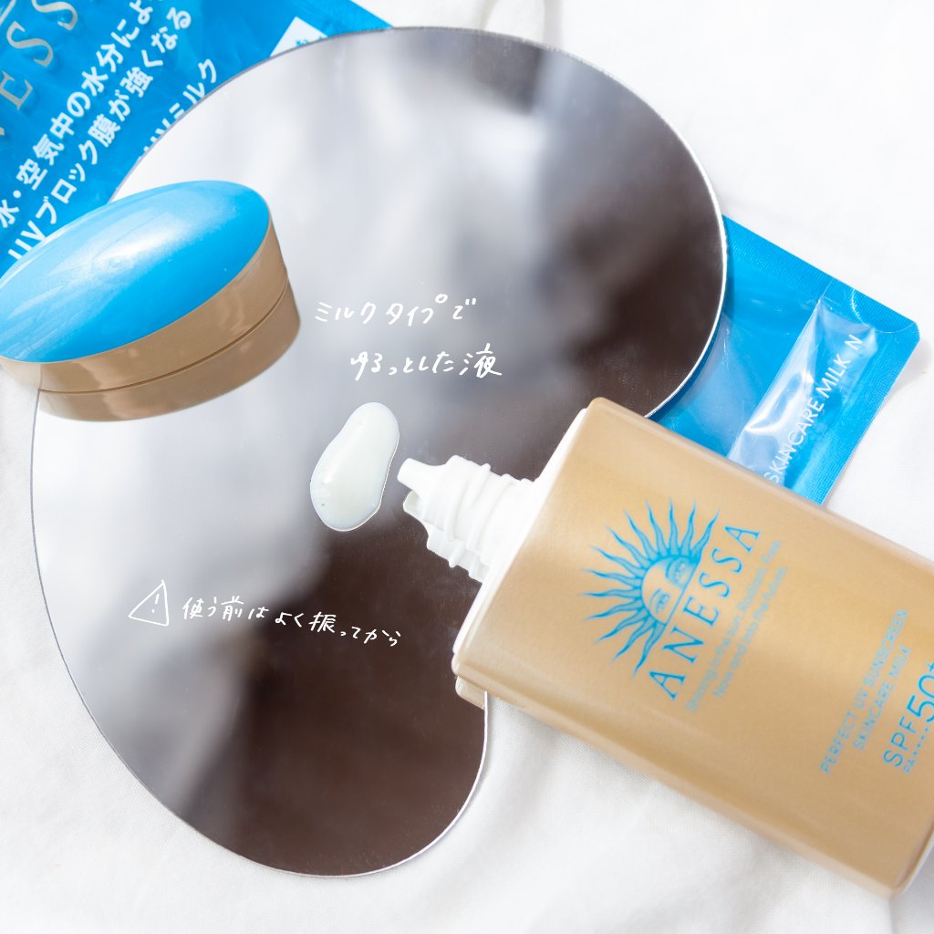 - 顔・からだ用 SPF50+ ・ PA++++ 汗、水、熱、そして空気中の水分に反応してUVブロック膜が強くなる技術搭載 最強※8 UVスキンケアミルク ※8 「最強」とはSPF50+・PA++++、及びアネッサ内ウォータープルーフ効果を意味する。 〇汗・水・熱、そして空気中の水分に自動的に反応して、UVブロック膜が強くなります。-オートブースター技術 〇透明美肌仕上げ-ビューティーアップ効果 “ビューティーアップ粉末”を新配合透明感のある美しいつや肌へ ○スキ ン ケア成 分 50% 配合 〇植物由来成分をブレンドした、紫外線による 乾燥 ダメージを防 ぐ 、うるおいを与える保湿美肌成分 黄花エキス、緑茶エキス、異性化糖、グリセリン 〇保湿 成分 コラーゲン、 スーパーヒアルロン酸※ 9 、 グリセリン ※9 アセチルヒアルロン 酸 Na 〇保湿持続 効果 ○スーパーウォータープルーフ 〇マスク蒸れ対応 〇耐こすれ ○化粧下地効果 ○せっけんで落とせ る 〇さらさらミルク ○生まれ変わった 、 心地よいフルーティーフローラルの香り 〇大気中に浮遊する微粒子、 PM2 .5 などから肌を保護 し ま す。-微粒子付着防止対応 ○砂が肌 につきにくいサンドプルーフ効果 〇海に流れ出にくいオーシャンフレンドリー処方※6 ※6 自社品内の耐水処方でない商品と比較 ○環境に優しいサステナブルなボトル ○植物由来の原料を一部使用した袋 〇オキシベンゾン 、 オクチノキサート無配合 ○無着色・ ノンコメドジェニックテスト・ アレルギーテスト済み (全ての方にニキビができない、アレルギ ーが起きないというわ けではありません)
