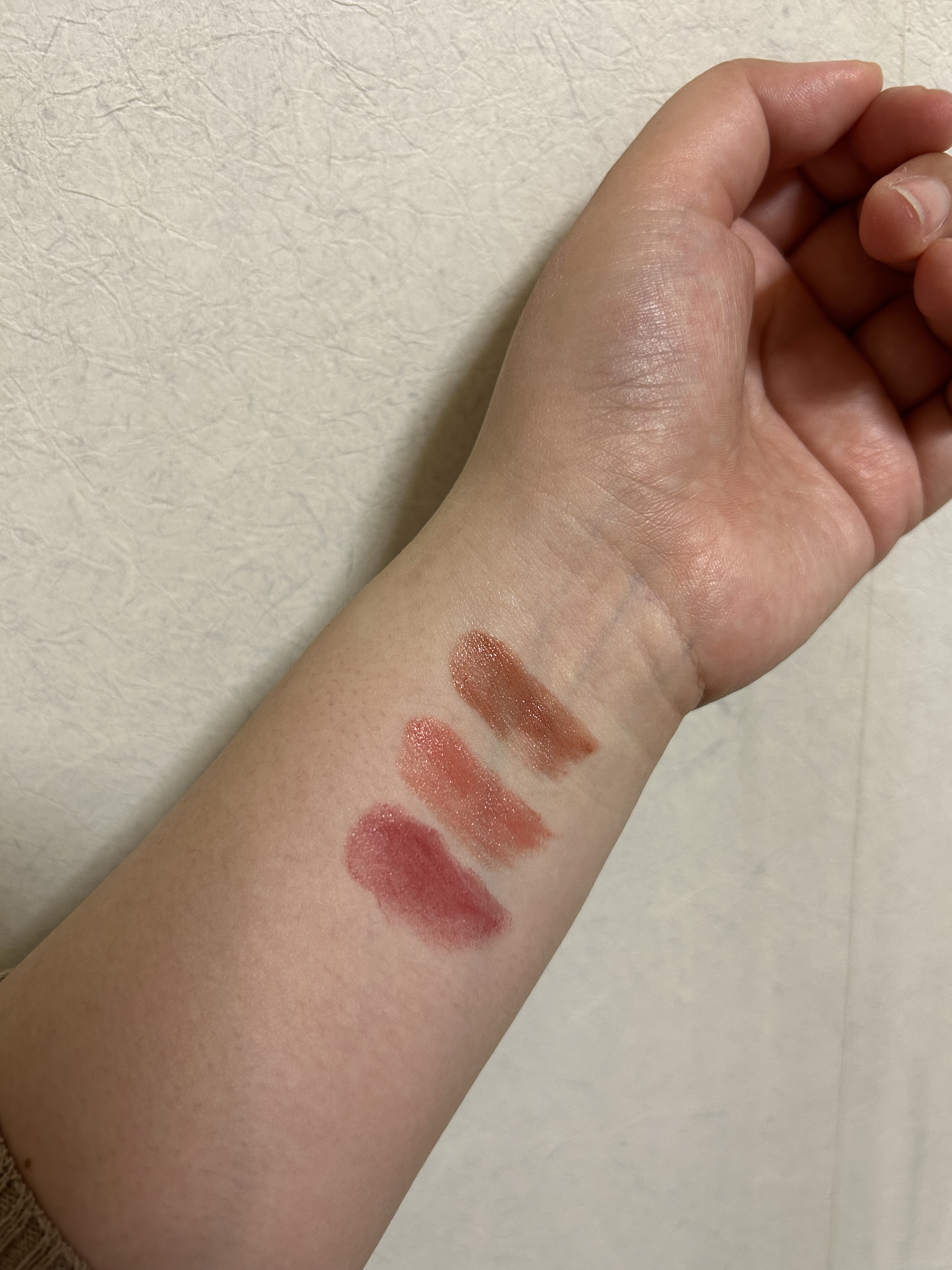 ヴァセリンモイスチャーティント02ラセットローズ03モードピンク色比較してみました!スティックで見てみると(2枚目)色味はかなり違う感じ02はパキッとしたピンクで03はパープルみの強いピンク手首に塗ってみると(3枚目)本当に限りなく同じ色です...
