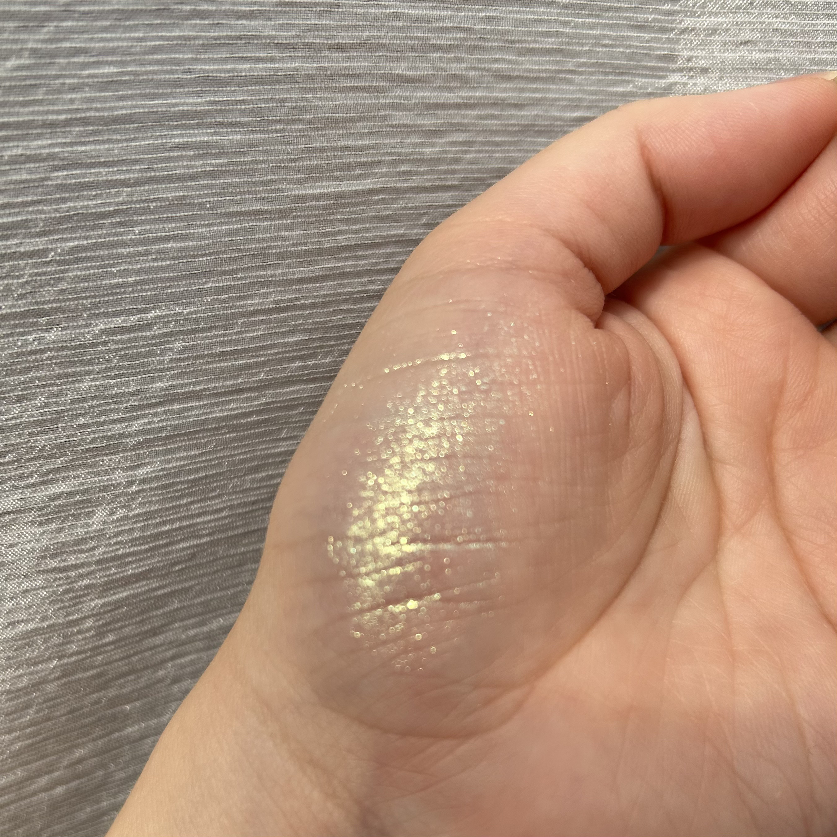 グリッターがザクザク入っていてキラキラ テクスチャーはクリーム状でなめらか しっとりしたつけ心地で ラメ飛びし難い キラキラ感が素敵✰⸒⸒ ラベンダープリズム 淡い発色のラベンダーに イエロー、ピンク、グリーンのラメ イエローのラメの主張が強めなので、 ラベンダーカラーを 使いたいけど似合わない・・・ という方でも チャレンジしやすいかもしれません✰⸒⸒