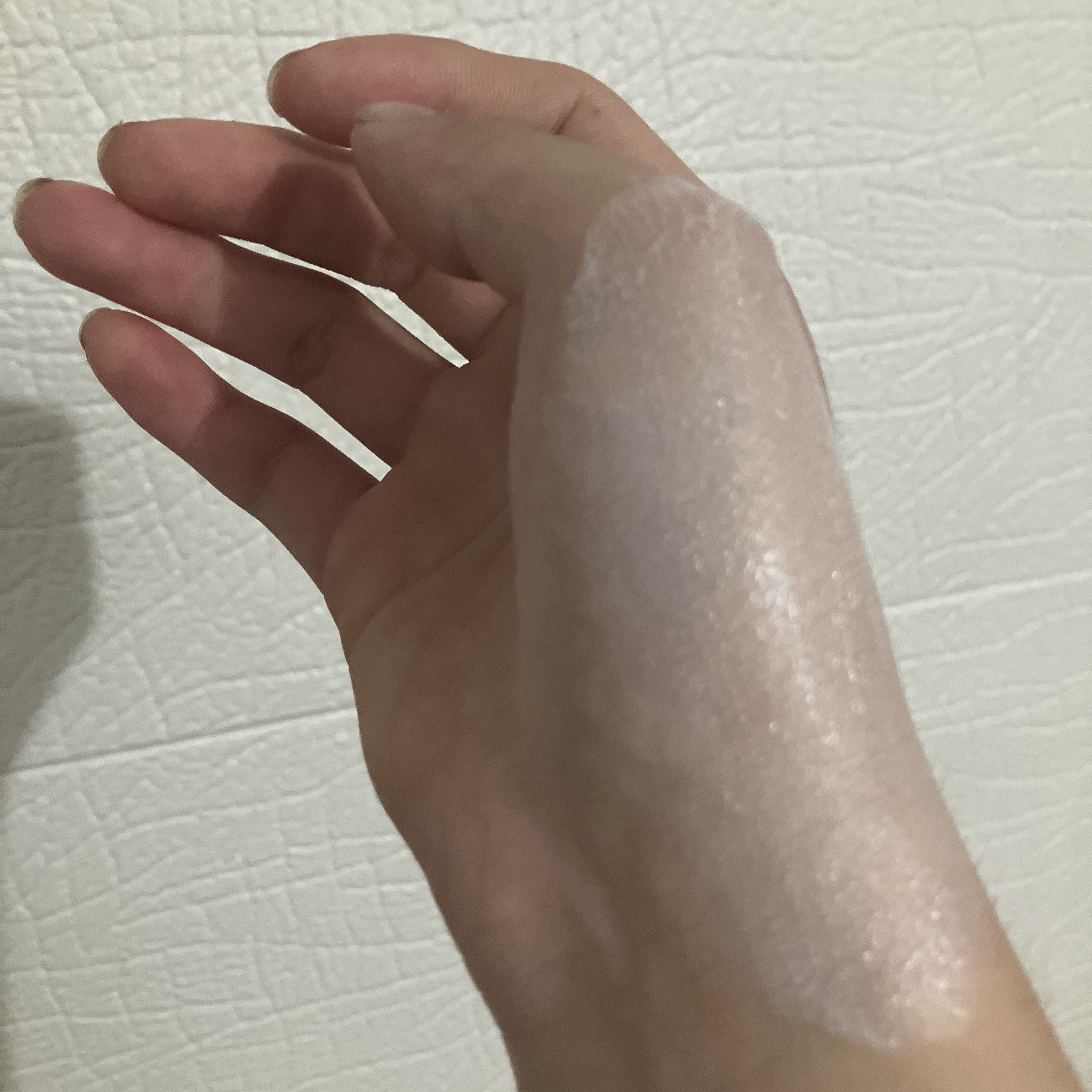 - <105g> 水、メトキシケイヒ酸エチルヘキシル、エタノール、BG、パルミチン酸イソプロピル、酸化チタン、ビスエチルヘキシルオキシフェノールメトキシフェニルトリアジン、エチルヘキシルトリアゾン、ジメチコン、(メタクリル酸ラウリル/メタクリル酸Na)クロスポリマー、水添ポリイソブテン、ジエチルアミノヒドロキシベンゾイル安息香酸ヘキシル、シリカ、含水シリカ、マイカ、パルミチン酸デキストリン、トリポリヒドロキシステアリン酸ジペンタエリスリチル、(アクリレーツ/アクリル酸アルキル(C10-30))クロスポリマー、トリエトキシカプリリルシラン、セタノール、ステアリン酸グリセリル、ヒドロキシエチルセルロース、ポリソルベート60、ポリシリコーン-9、水酸化Al、水酸化K、ローヤルゼリーエキス、ヒアルロン酸Na、酸化スズ、フェノキシエタノール、メチルパラベン、EDTA-2Na、BHT、香料