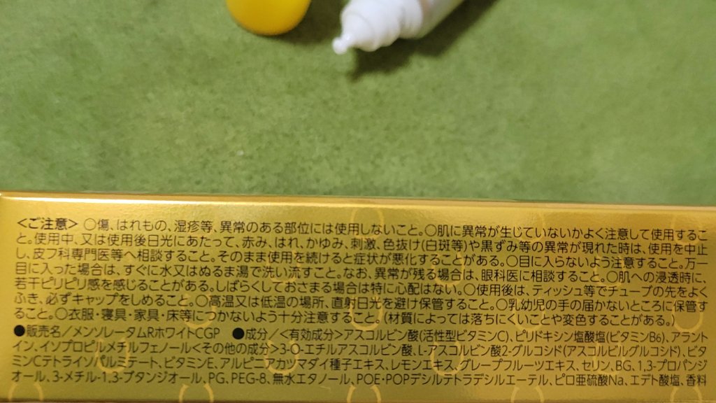- <20ml> BG、香料、PG、セリン、アスコルビン酸、レモンエキス、3-O-エチルアスコルビン酸、アラントイン、ビタミンE、エデト酸塩、無水エタノール、ピロ亜硫酸Na、イソプロピルメチルフェノール、PEG-8、L-アスコルビン酸2-グルコシド、グレープフルーツエキス、アルピニアカツマダイ種子エキス、1,3-プロパンジオール、POE・POPデシルテトラデシルエーテル、3-メチル-1,3-ブタンジオール、ビタミンCテトライソパルミテート、ピリドキシン塩酸塩