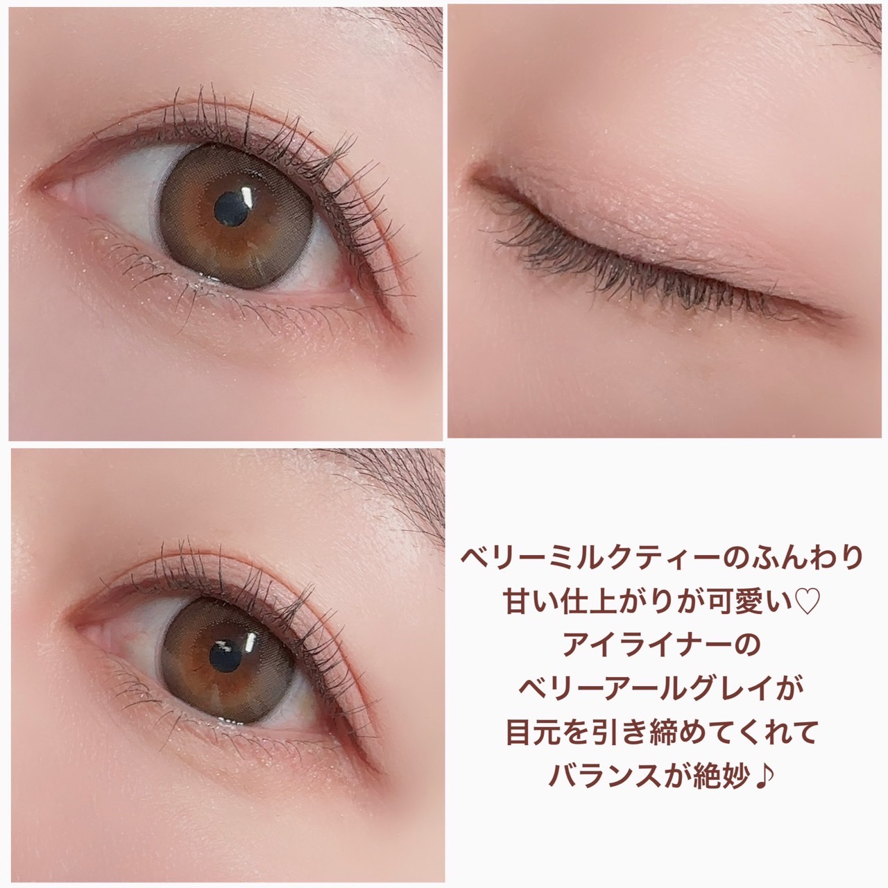 CEZANNEのジェルライナーめっちゃ良すぎる(( ⁎′̥̥̥ ⌑ ‵̥̥̥ ))!! 肌馴染みのいいカラーでうるうるで、ぜんぜん落ちない◎しかも550円税込って!!すごすぎます! 今回使ったのは50ピンクベージュです。 ・トーンアップアイシャドウ 10ベリーブラウン638円税込 ブラウンみが強いので甘すぎない仕上がりに♡ ベリーという名のとおり青みのあるピンクブラウンです。ブルベさん向け♡ ・描くふたえアイライナー 20影用グレージュ660円税込 絶妙な薄さと影感!これ以外涙袋ラインは考えられない! ・極細 アイライナーR 20ブラウン 638円税込 プチプラなのに描きやすいし、にじまない。ついつい手に取っちゃうアイライナー!
