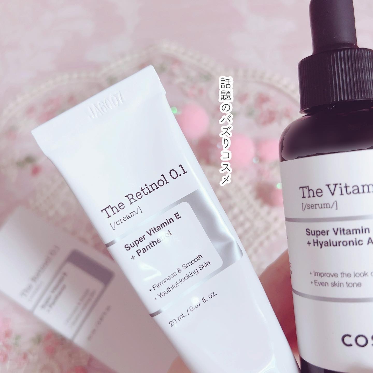 - <RXザ・レチノール0.1クリーム> 水、グリセリン、ジメチコン、加水分解ヒアルロン酸、カルボマー、トコフェロール、ステアリン酸、プロパンジオール、エチルヘキシルグリセリン、ステアリン酸グリセリル、セテアリルアルコール、ヒアルロン酸、アスコルビン酸、水添レシチン、ステアリン酸ポリグリセリル-10、トレハロース、酢酸トコフェロール、カプリル酸グリセリル、3-O-エチルアスコルビン酸、ミリスチン酸、パルミチン酸、ラウリン酸、1,2-ヘキサンジオール、アラントイン、ヒマワリ種子油、BHT、ポリシリコーン-11、ヒアルロン酸ナトリウム、トロメタミン、アデノシン、トコトリエノール、グルタチオン、カプリル酸/カプリン酸トリグリセリド、EDTA二ナトリウム、ヒアルロン酸Naクロスポリマー、アクリル酸ヒドロキシエチル/アクリロイルジメチルタウリン酸ナトリウム共重合体、亜硫酸ナトリウム、ベータカロチン、パンノノール、ブチロスペルマムパーキー(シアバター)バター、グリシンソジャ(大豆)油、アンモニウムアクリロイルジメチルタウレート/VP共重合体、グリセリルポリメタクリレート、ニンジン根 抽出物、レチノール(0.1%)、オリザサティバ(米)ふすまワックス、ポリグリセリル-3メチルグルコースジステアレート、ソルビタンイソステアレート、エラエス・ギネンシス (パーム)油、リムナンサスアルバ(メドウフォーム)種子油、アセチル化ヒアルロン酸Na