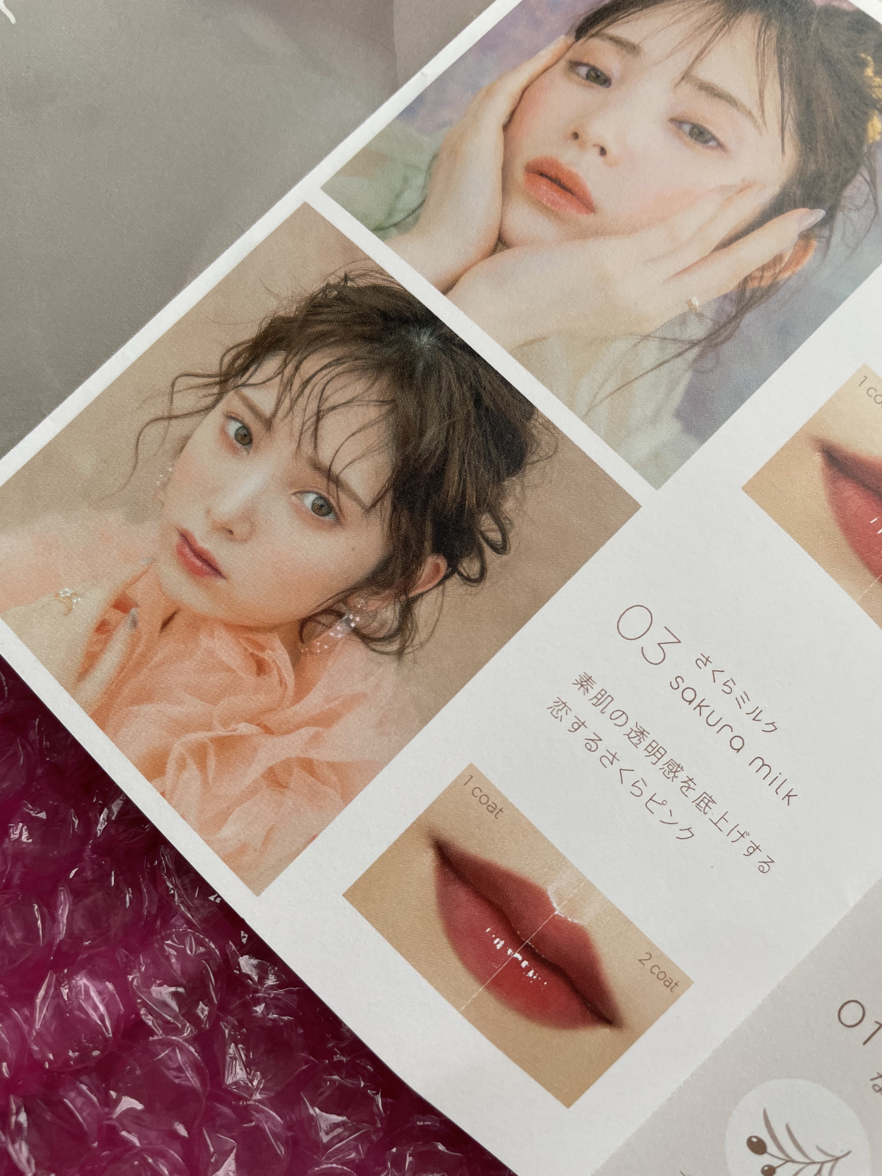 - <01 れもんクッキー> ジフェニルジメチコン、水、リンゴ酸ジイソステアリル、ビスジグリセリルポリアシルアジペート-2、オクチルドデカノール、水添ポリイソブテン、ダイマージリノール酸ダイマージリノレイルビス(ベヘニル/イソステアリル/フィトステリル)、ジグリセリン、DPG、セチルPEG/PPG-10/1ジメチコン、イソステアリン酸ソルビタン、ポリソルベート60、スクワラン、アーモンド油、オリーブ果実油、アルガニアスピノサ核油、カニナバラ果実エキス、トリ(カプリル酸/カプリン酸)グリセリル、グリセリン、ステビオシド、(アクリル酸ヒドロキシエチル/アクリロイルジメチルタウリンNa)コポリマー、ポリグリセリン-3、ペンチレングリコール、エチルヘキシルグリセリン、セテアレス-20、テトラ(ジ-t-ブチルヒドロキシヒドロケイヒ酸)ペンタエリスリチル、フェノキシエタノール、香料、酸化チタン、酸化鉄、赤227、黄4、黄5 <02 あんずバター> ジフェニルジメチコン、水、リンゴ酸ジイソステアリル、ビスジグリセリルポリアシルアジペート-2、オクチルドデカノール、水添ポリイソブテン、ダイマージリノール酸ダイマージリノレイルビス(ベヘニル/イソステアリル/フィトステリル)、ジグリセリン、DPG、セチルPEG/PPG-10/1ジメチコン、イソステアリン酸ソルビタン、ポリソルベート60、スクワラン、アーモンド油、オリーブ果実油、アルガニアスピノサ核油、カニナバラ果実エキス、トリ(カプリル酸/カプリン酸)グリセリル、グリセリン、ステビオシド、(アクリル酸ヒドロキシエチル/アクリロイルジメチルタウリンNa)コポリマー、ポリグリセリン-3、ペンチレングリコール、エチルヘキシルグリセリン、セテアレス-20、テトラ(ジ-t-ブチルヒドロキシヒドロケイヒ酸)ペンタエリスリチル、フェノキシエタノール、香料、酸化チタン、酸化鉄、赤227、黄4、黄5 <03 さくらミルク > ジフェニルジメチコン、水、リンゴ酸ジイソステアリル、ビスジグリセリルポリアシルアジペート-2、オクチルドデカノール、水添ポリイソブテン、ダイマージリノール酸ダイマージリノレイルビス(ベヘニル/イソステアリル/フィトステリル)、ジグリセリン、DPG、セチルPEG/PPG-10/1ジメチコン、イソステアリン酸ソルビタン、ポリソルベート60、スクワラン、アーモンド油、オリーブ果実油、アルガニアスピノサ核油、カニナバラ果実エキス、トリ(カプリル酸/カプリン酸)グリセリル、グリセリン、ステビオシド、(アクリル酸ヒドロキシエチル/アクリロイルジメチルタウリンNa)コポリマー、ポリグリセリン-3、ペンチレングリコール、エチルヘキシルグリセリン、セテアレス-20、テトラ(ジ-t-ブチルヒドロキシヒドロケイヒ酸)ペンタエリスリチル、フェノキシエタノール、香料、酸化チタン、赤227、黄4、青1 <04 コットンスイートピー > ジフェニルジメチコン、水、リンゴ酸ジイソステアリル、ビスジグリセリルポリアシルアジペート-2、オクチルドデカノール、水添ポリイソブテン、ダイマージリノール酸ダイマージリノレイルビス(ベヘニル/イソステアリル/フィトステリル)、ジグリセリン、DPG、セチルPEG/PPG-10/1ジメチコン、イソステアリン酸ソルビタン、ポリソルベート60、スクワラン、アーモンド油、オリーブ果実油、アルガニアスピノサ核油、カニナバラ果実エキス、トリ(カプリル酸/カプリン酸)グリセリル、グリセリン、ステビオシド、(アクリル酸ヒドロキシエチル/アクリロイルジメチルタウリンNa)コポリマー、ポリグリセリン-3、ペンチレングリコール、エチルヘキシルグリセリン、セテアレス-20、テトラ(ジ-t-ブチルヒドロキシヒドロケイヒ酸)ペンタエリスリチル、フェノキシエタノール、香料、酸化チタン、酸化鉄、赤104(1)、黄5、青1 <05 チョコレートコスモス> ジフェニルジメチコン、水、リンゴ酸ジイソステアリル、ビスジグリセリルポリアシルアジペート-2、オクチルドデカノール、水添ポリイソブテン、ダイマージリノール酸ダイマージリノレイルビス(ベヘニル/イソステアリル/フィトステリル)、ジグリセリン、DPG、セチルPEG/PPG-10/1ジメチコン、イソステアリン酸ソルビタン、ポリソルベート60、スクワラン、アーモンド油、オリーブ果実油、アルガニアスピノサ核油、カニナバラ果実エキス、トリ(カプリル酸/カプリン酸)グリセリル、グリセリン、ステビオシド、(アクリル酸ヒドロキシエチル/アクリロイルジメチルタウリンNa)コポリマー、ポリグリセリン-3、ペンチレングリコール、エチルヘキシルグリセリン、セテアレス-20、テトラ(ジ-t-ブチルヒドロキシヒドロケイヒ酸)ペンタエリスリチル、フェノキシエタノール、香料、酸化チタン、酸化鉄、赤227、黄4、黄5、青1 <06 ももゼリー> ジフェニルジメチコン、水、リンゴ酸ジイソステアリル、ビスジグリセリルポリアシルアジペート-2、オクチルドデカノール、水添ポリイソブテン、ダイマージリノール酸ダイマージリノレイルビス(ベヘニル/イソステアリル/フィトステリル)、ジグリセリン