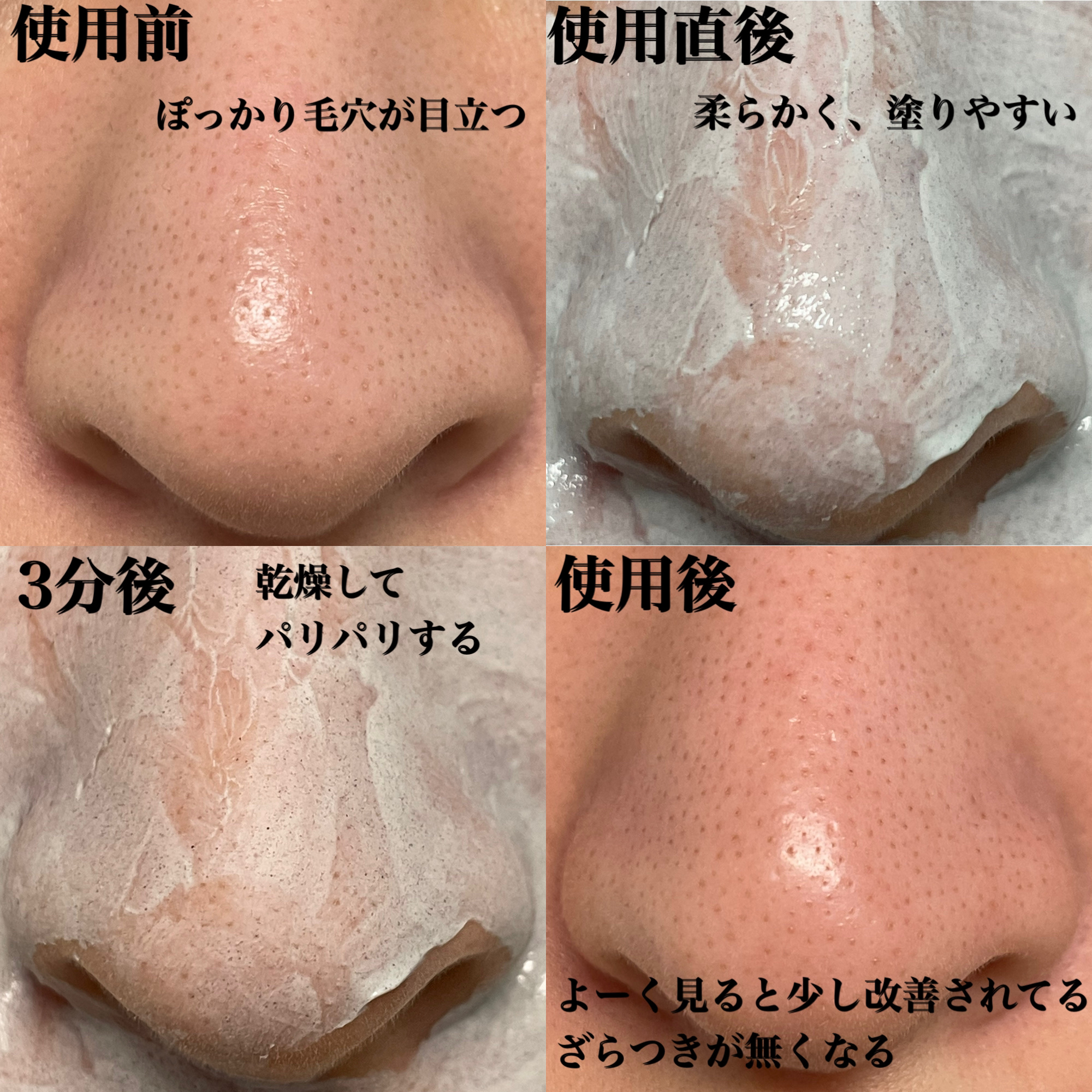 毛穴汚れの気になるところをクレイで優しくケアしてくれます! 週1〜2回のスペシャルなクレイパックにも 毎日の洗顔にも(時間をおかないで洗い流す) 使い分けできるので便利😊 混合肌ですが乾燥しやすい部分も、すぐにカピカピしてこないのでうれしいです! クレイなので柔らかく伸びてくれます 洗い流す時は小鼻やおでこの生え際などに残さないように注意して流すといいと思います クレイパックにしては流しやすい方かなーと思います 洗顔する前の鼻の毛穴(黒ずみ)と、洗い上がりの鼻の毛穴を自分で比べてみると洗ってすぐは綺麗になっていました💕 油断するとすぐに毛穴の汚れは溜まるので、さすがに一回で改善されるものではないですが… コツコツ綺麗にしていきたいです!