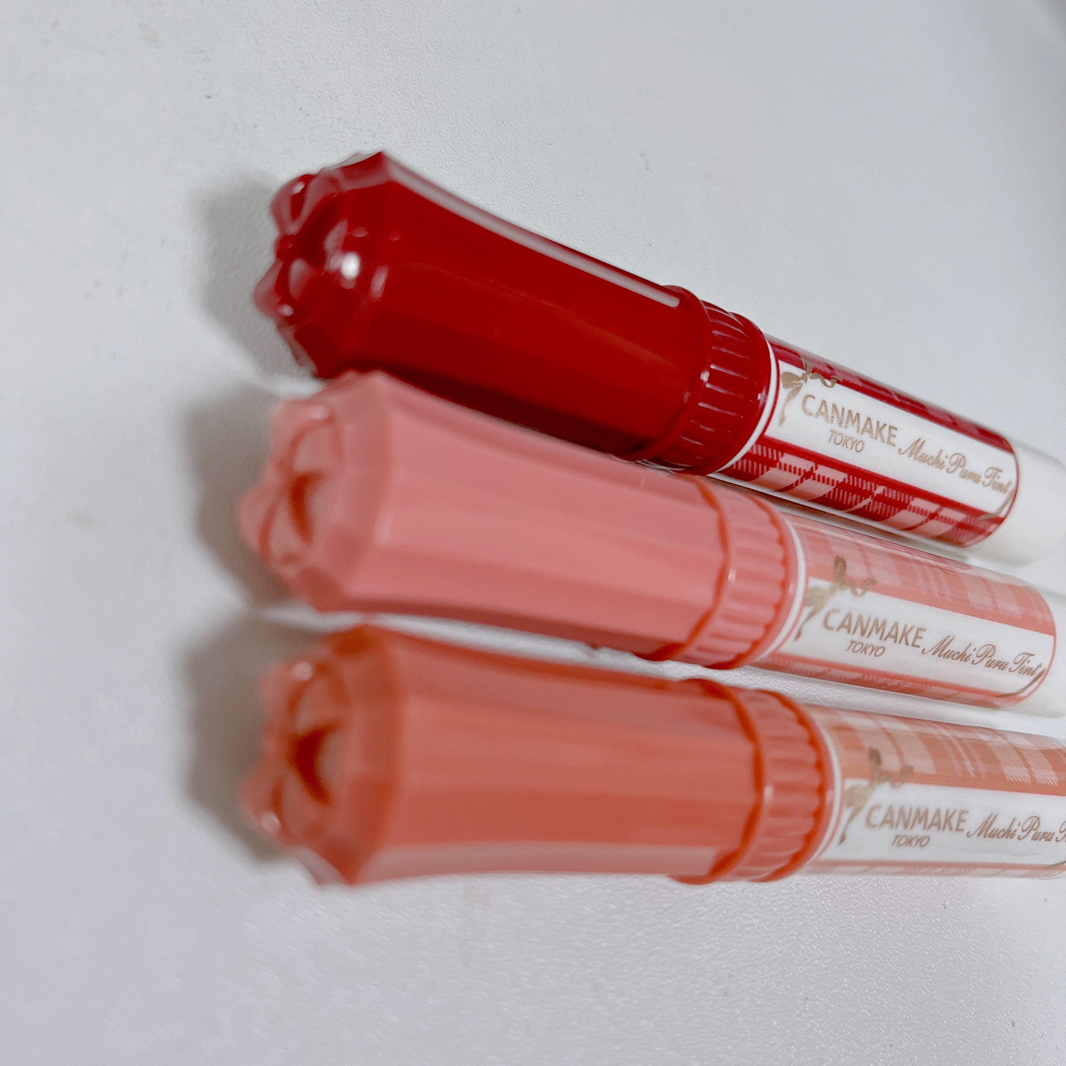 \キャンメイクむちぷる全色パソカ図鑑/📝キャンメイクむちぷるティント¥77001バタースコッチ02モモ03ワインベリー05フィグピューレ06ラズベリーケーキ07フルーツオレ40thxストロベリーボンボン#キャンメイク#プチプラコスメ#ティント...