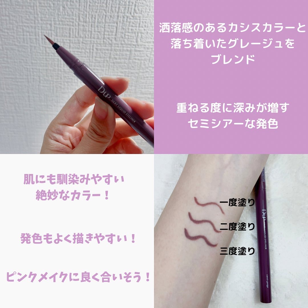 .D-UPシルキーリキッドアイライナーWPから新色登場!目元を締める深みグレージュ"チャコールモカ"黄味や赤みに偏りすぎない絶妙カラー✨深みはあるけど暗すぎずどんなメイクにも合わせやすい☺️また季節問わず使いやすいし誰でも似合う色になってる...