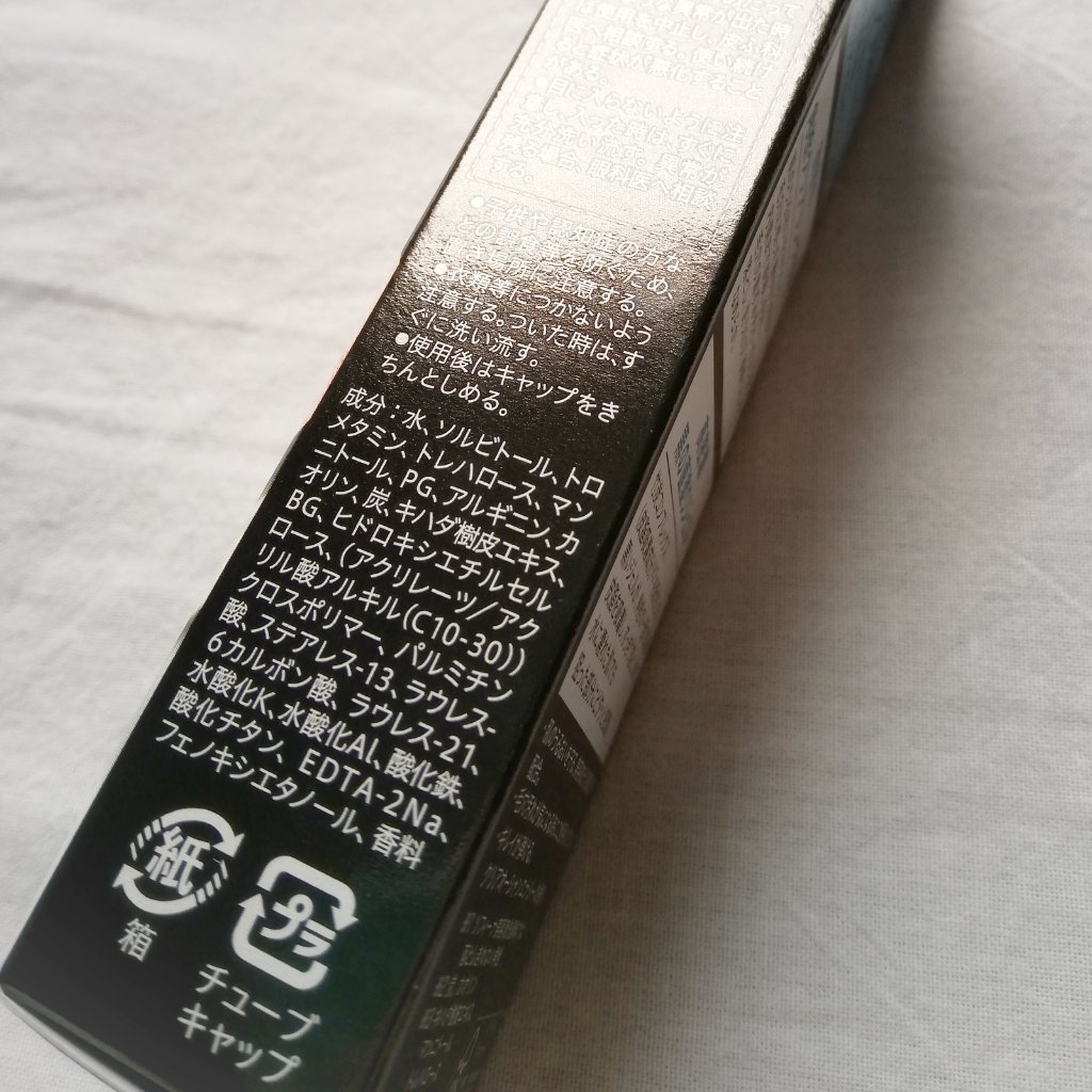 - <30g> カオリン、水、酸化チタン、BG、ソルビトール、水酸化K、フェノキシエタノール、香料、酸化鉄、PG、キハダ樹皮エキス、アルギニン、ヒドロキシエチルセルロース、トレハロース、マンニトール、パルミチン酸、EDTA-2Na、(アクリレーツ/アクリル酸アルキル(C10-30))クロスポリマー、炭、ラウレス-6カルボン酸、トロメタミン、ラウレス-21、ステアレス-13、水酸化AI <51g(限定)> 水、ソルビトール、トロメタミン、トレハロース、マンニトール、PG、アルギニン、カオリン、炭、キハダ樹皮エキス、BG、ヒドロキシエチルセルロース、(アクリレーツ/アクリル酸アルキル(C10-30))クロスポリマー、パルミチン酸、ステアレス-13、ラウレス-6カルボン酸、ラウレス-21、水酸化K、水酸化AI、酸化鉄、酸化チタン、EDTA-2Na、フェノキシエタノール、香料