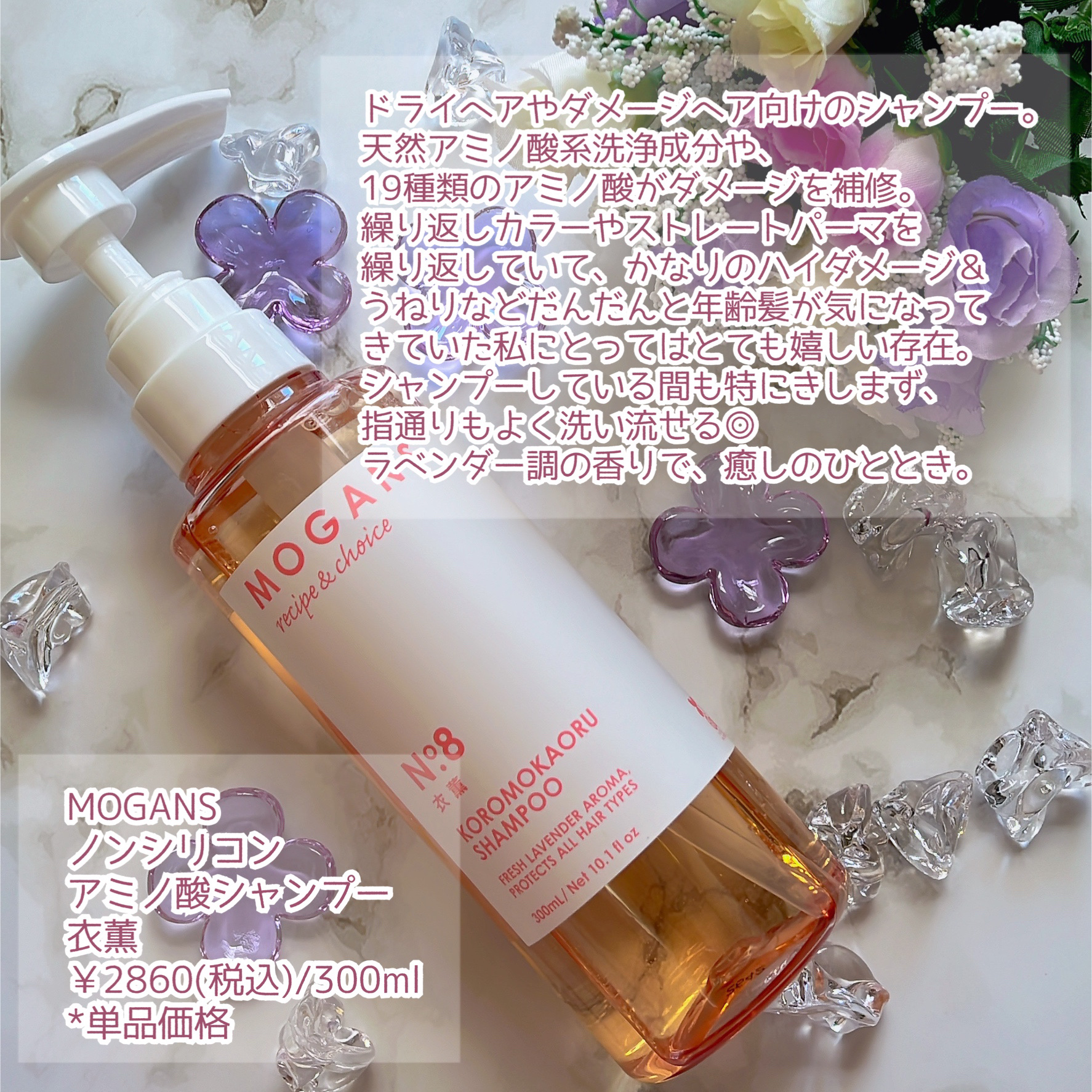 ノンシリコンアミノ酸シャンプー&コンディショナー衣薫(ころもかおる)内容量:各300ml価格:¥6,435(税込)MOGANSの衣薫シリーズ🧴ドライヘアやダメージヘア向けのシャンプーとコンディショナーです✨植物由来成分を99%以上配合し、髪と...