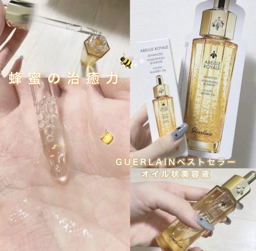 なめらかで輝きを放つハリ蜜肌へ導くゲランのブースト美容液を使ってみました🍯ゲランアベイユロイヤルウォータリーオイルセロム15年以上にわたりハチミツが持つ肌への効果を研究・解明し、肌の自己修復メカニズムの知見を深めて開発された美容液だそうです✍...