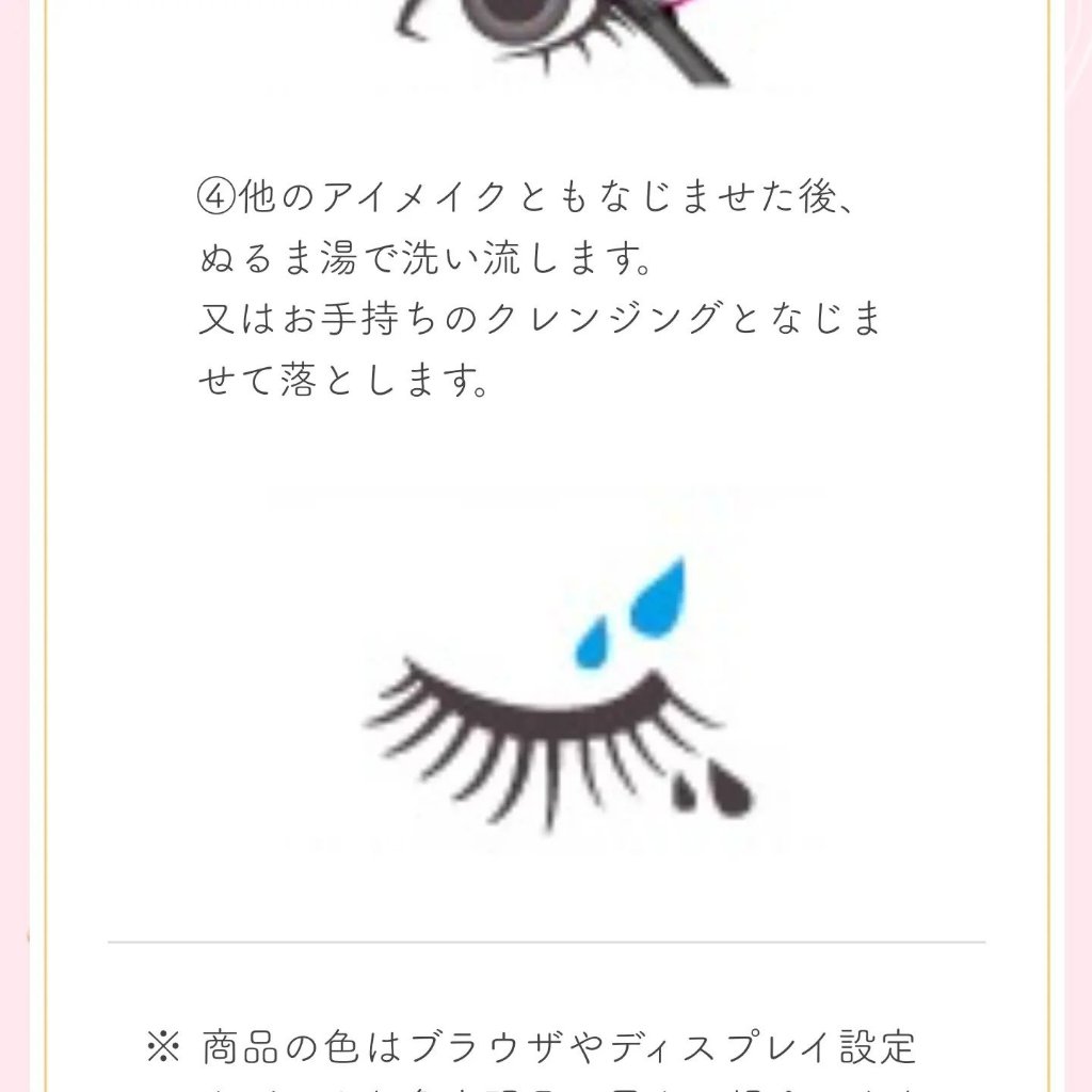 - <クイックラッシュカーラーリムーバー> 水、BG、ヒアルロン酸Na、フェノキシエタノール、スクワラン、トコフェロール、ホホバ種子油、オリーブ果実油、カニナバラ果実油、ミネラルオイル、カミツレ花エキス、ツバキ種子油、マカデミア種子油、水添ポリイソブテン、アルガニアスピノサ核油、トリイソステアリン酸PEG-20グリセリル、オクチルドデカノール、イソステアリン酸PEG-20グリセリル、ジメチルシリル化シリカ、(C13-15)アルカン、加水分解ケラチン(羊毛)