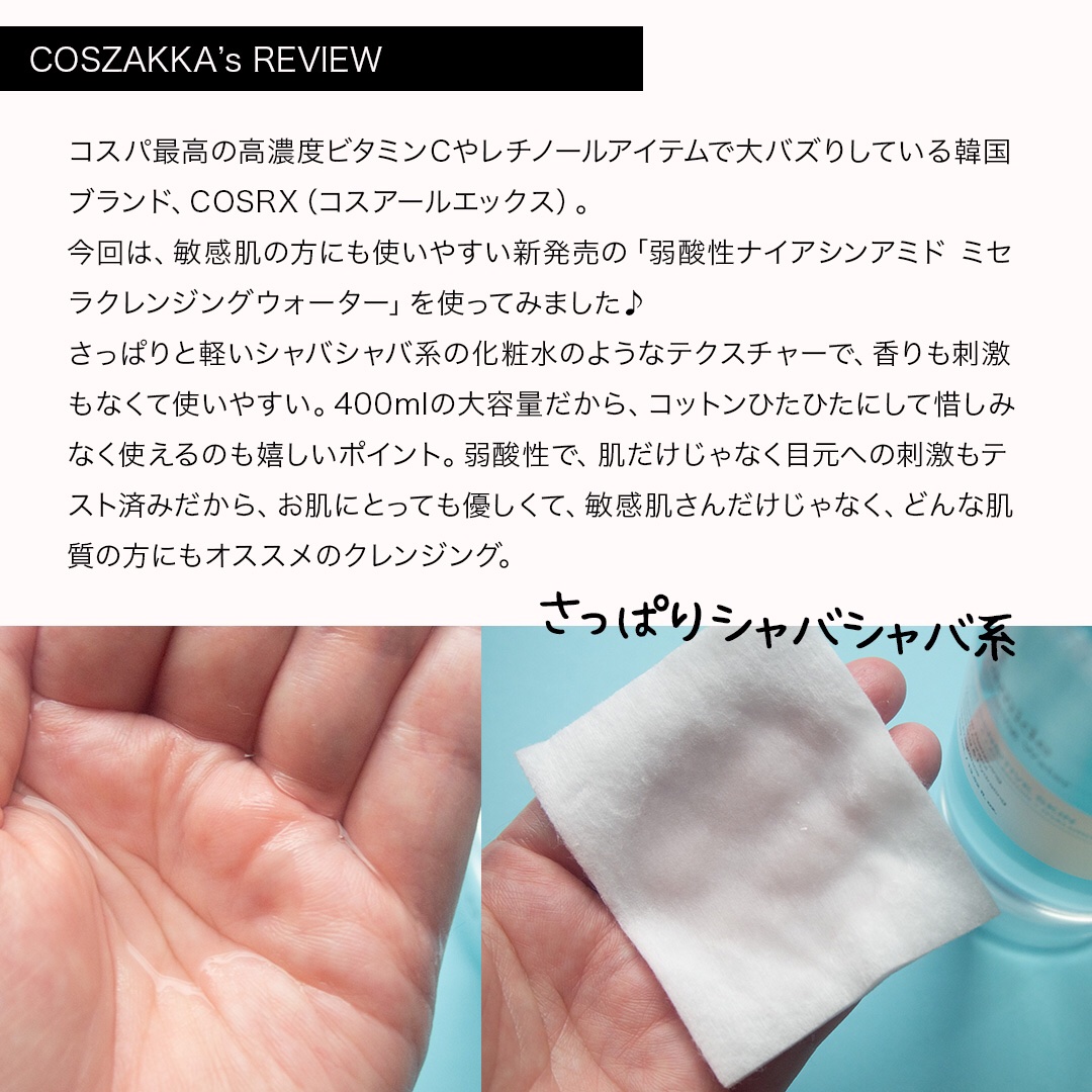 商品詳細情報COSRX 弱酸性 ナイアシンアミド ミセラークレンジングウォーター