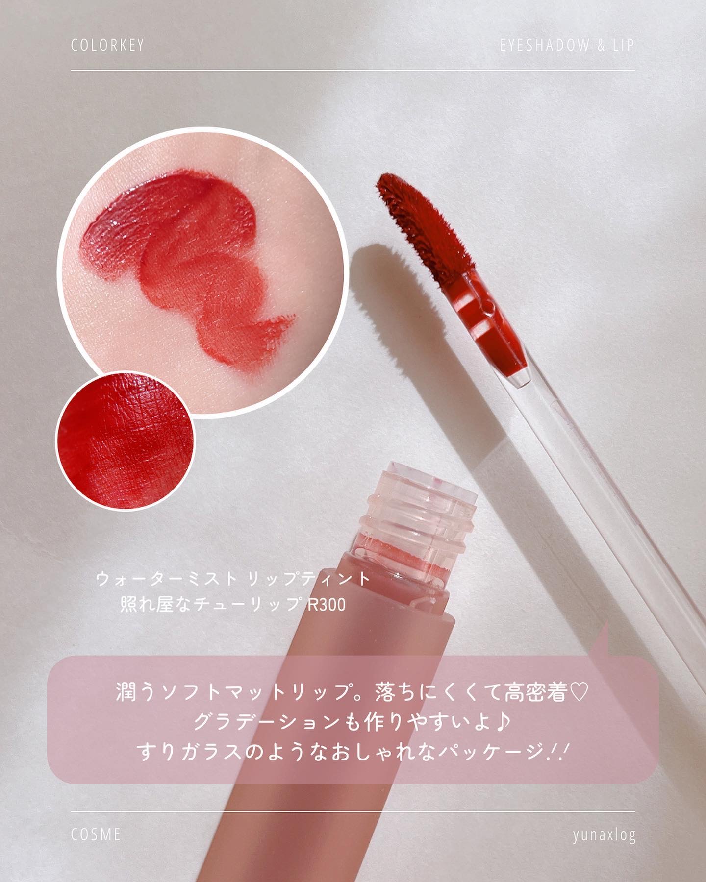| 高保湿が持続するリップ😊 ティッシュオフしてもしっかり色が残るよ! | 詳細を見る |