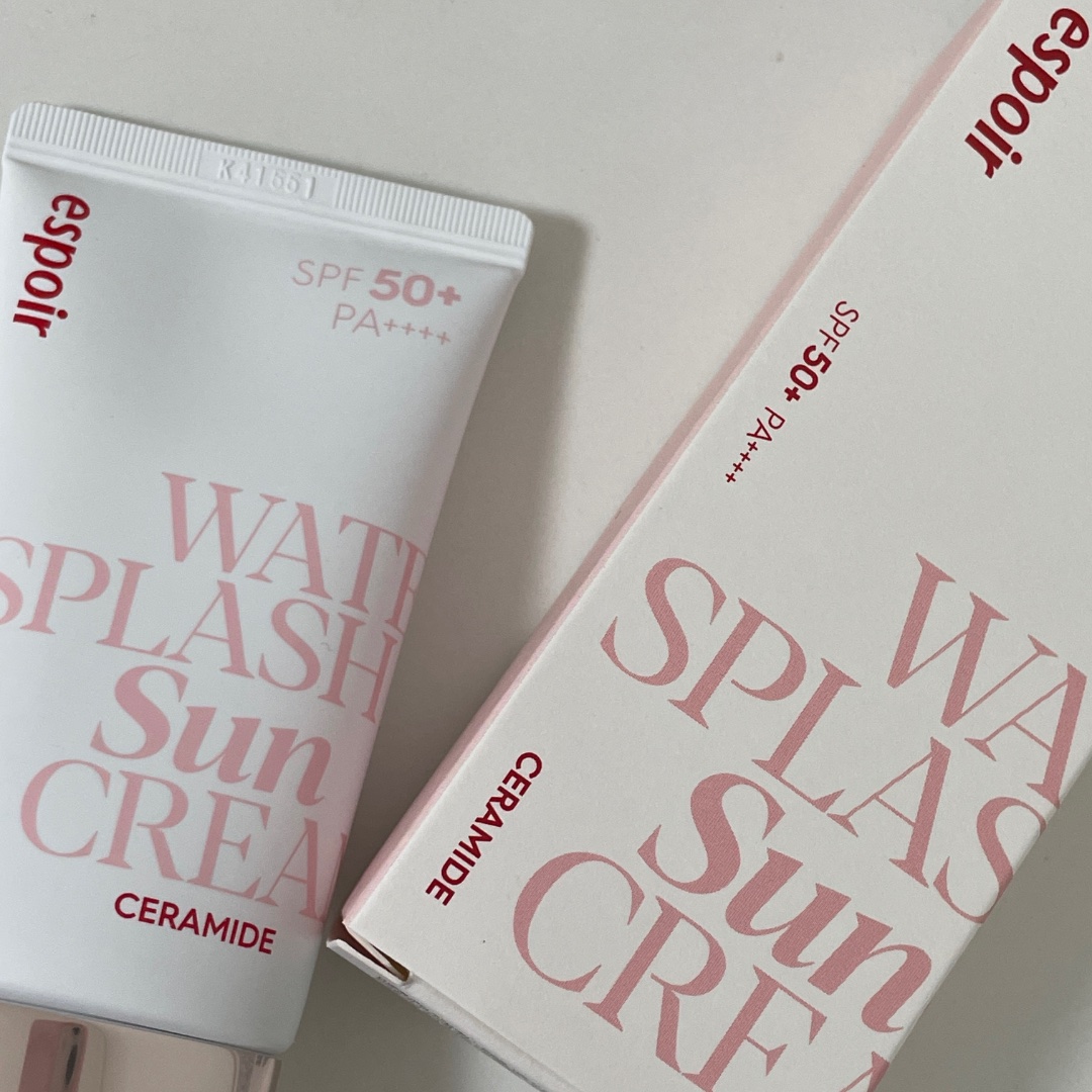 espoirウォータースプラッシュサンクリームセラミド60ml💜SPF50+PA++++💜保湿重視のピンク系日焼け止め下地‼️花粉の時期はいつも乾燥するし肌が荒れて赤くなって大変で💦下地を塗ると皮がめくれてきたりするんだけど、これは皮がめくれ...