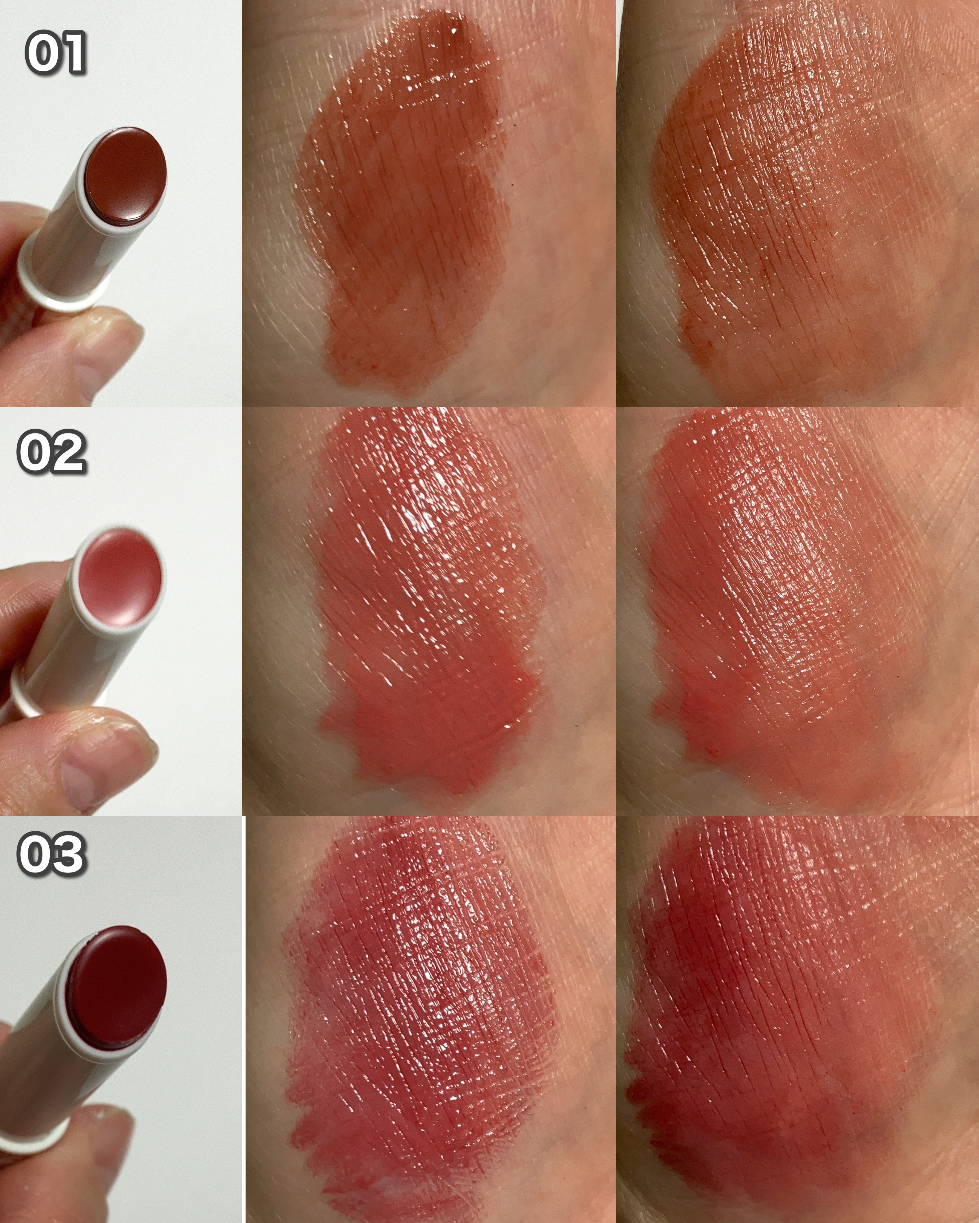 - <01 バタースコッチ> 水添ポリイソブテン、トリエチルヘキサノイン、ビスジグリセリルポリアシルアジペート-2、ヒドロキシステアリン酸エチルヘキシル、ワセリン、リンゴ酸ジイソステアリル、マイクロクリスタリンワックス、合成ワックス、シリカ、セスキイソステアリン酸ソルビタン、メントキシプロパンジオール、キャンデリラロウ、バニリルブチル、トコフェロール、クエン酸、クエン酸Na、ヒアルロン酸Na、アルガニアスピノサ核油、ハチミツ、シア脂、水、BG、加水分解コラーゲン、酸化鉄、酸化チタン、黄4、黄5、赤202、橙201、テトライソステアリン酸ポリグリセリル-2、青1、水酸化Al、赤223 <02 モモ> 水添ポリイソブテン、トリエチルヘキサノイン、ビスジグリセリルポリアシルアジペート-2、ヒドロキシステアリン酸エチルヘキシル、ワセリン、リンゴ酸ジイソステアリル、マイクロクリスタリンワックス、合成ワックス、シリカ、セスキイソステアリン酸ソルビタン、メントキシプロパンジオール、キャンデリラロウ、バニリルブチル、トコフェロール、クエン酸、クエン酸Na、ヒアルロン酸Na、アルガニアスピノサ核油、ハチミツ、シア脂、水、BG、加水分解コラーゲン、酸化チタン、黄4、黄5、赤202、酸化鉄、橙201、水酸化Al、テトライソステアリン酸ポリグリセリル-2 <03 ワインベリー> 水添ポリイソブテン、トリエチルヘキサノイン、ビスジグリセリルポリアシルアジペート-2、ヒドロキシステアリン酸エチルヘキシル、ワセリン、リンゴ酸ジイソステアリル、マイクロクリスタリンワックス、合成ワックス、シリカ、セスキイソステアリン酸ソルビタン、メントキシプロパンジオール、キャンデリラロウ、バニリルブチル、トコフェロール、クエン酸、クエン酸Na、ヒアルロン酸Na、アルガニアスピノサ核油、ハチミツ、シア脂、水、BG、加水分解コラーゲン、黄4、赤202、酸化チタン、酸化鉄、橙201、黄5、テトライソステアリン酸ポリグリセリル-2、赤223、水酸化Al、青1 <05 フィグピューレ> 水添ポリイソブテン、トリエチルヘキサノイン、ビスジグリセリルポリアシルアジペート-2、ヒドロキシステアリン酸エチルヘキシル、ワセリン、リンゴ酸ジイソステアリル、マイクロクリスタリンワックス、合成ワックス、シリカ、セスキイソステアリン酸ソルビタン、メントキシプロパンジオール、キャンデリラロウ、バニリルブチル、トコフェロール、クエン酸、クエン酸Na、ヒアルロン酸Na、アルガニアスピノサ核油、ハチミツ、シア脂、水、BG、加水分解コラーゲン、酸化チタン、黄4、赤202、黄5、酸化鉄、橙201、青1、水酸化Al、テトライソステアリン酸ポリグリセリル-2、赤223 <06 ラズベリーケーキ> 水添ポリイソブテン、トリエチルヘキサノイン、ビスジグリセリルポリアシルアジペート-2、ヒドロキシステアリン酸エチルヘキシル、リンゴ酸ジイソステアリル、ワセリン、マイクロクリスタリンワックス、合成ワックス、シリカ、セスキイソステアリン酸ソルビタン、メントキシプロパンジオール、キャンデリラロウ、バニリルブチル、トコフェロール、クエン酸、クエン酸Na、ヒアルロン酸Na、アルガニアスピノサ核油、ハチミツ、シア脂、水、BG、加水分解コラーゲン、酸化チタン、酸化鉄、赤202、橙201、水酸化Al、テトライソステアリン酸ポリグリセリル-2、青1、赤223、黄5 <07 フルーツオレ> 水添ポリイソブテン、トリエチルヘキサノイン、ビスジグリセリルポリアシルアジペート-2、ヒドロキシステアリン酸エチルヘキシル、ワセリン、リンゴ酸ジイソステアリル、マイクロクリスタリンワックス、合成ワックス、シリカ、セスキイソステアリン酸ソルビタン、メントキシプロパンジオール、キャンデリラロウ、バニリルブチル、トコフェロール、クエン酸、クエン酸Na、ヒアルロン酸Na、アルガニアスピノサ核油、ハチミツ、シア脂、水、BG、加水分解コラーゲン、酸化チタン、酸化鉄、黄4、水酸化Al、赤202、橙201、黄5、青1、テトライソステアリン酸ポリグリセリル-2 <04 チョコミルク> 水添ポリイソブテン、トリエチルヘキサノイン、ビスジグリセリルポリアシルアジペート-2、ヒドロキシステアリン酸エチルヘキシル、リンゴ酸ジイソステアリル、ワセリン、マイクロクリスタリンワックス、合成ワックス、シリカ、セスキイソステアリン酸ソルビタン、メントキシプロパンジオール、キャンデリラロウ、バニリルブチル、トコフェロール、クエン酸、クエン酸Na、ヒアルロン酸Na、アルガニアスピノサ核油、ハチミツ、シア脂、水、BG、加水分解コラーゲン、酸化鉄、青1、酸化チタン、橙201、赤202、テトライソステアリン酸ポリグリセリル-2、黄4、水酸化Al