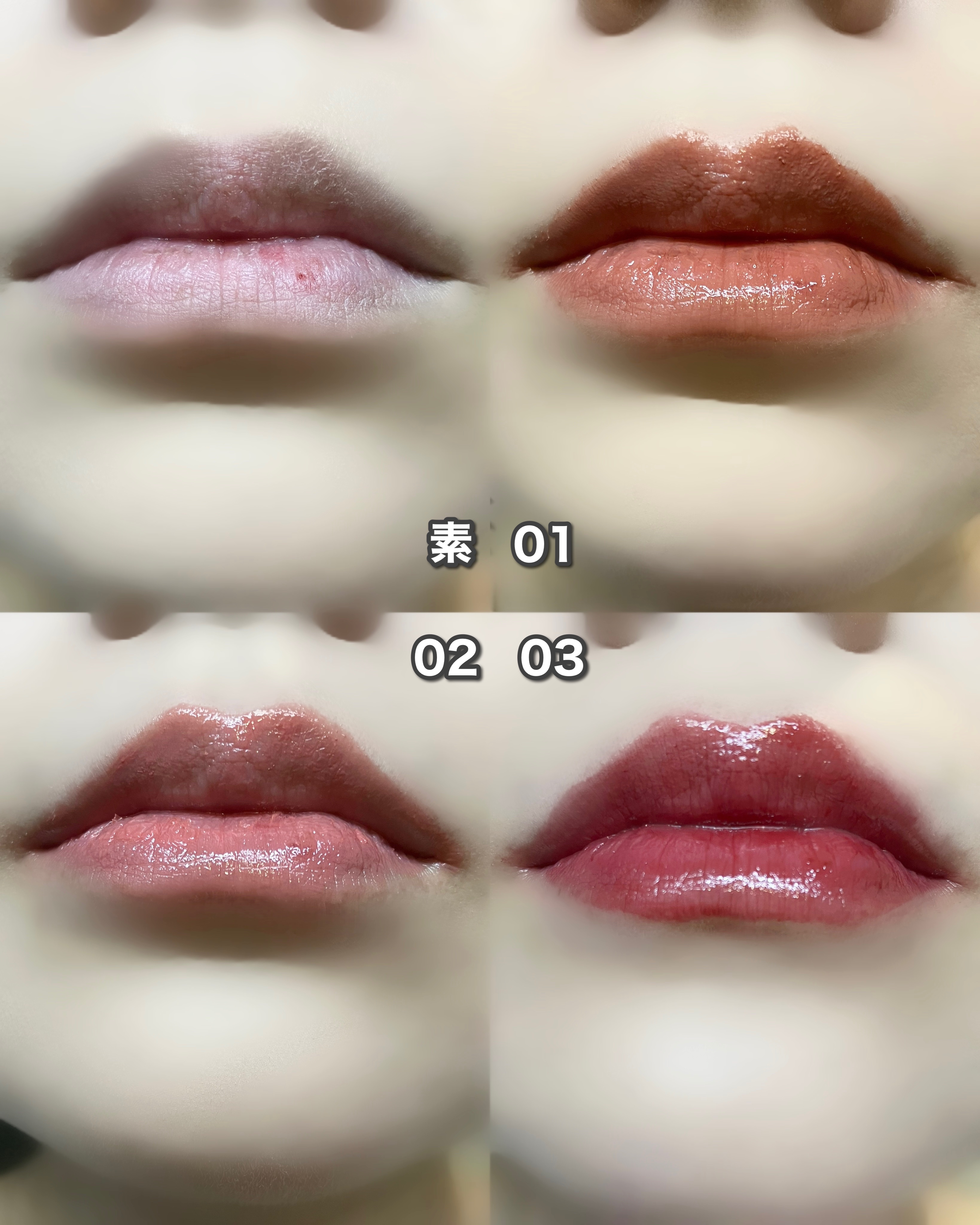 相変わらずオシャレなパケ❤️ このカラーがとてもキュート🥰 むっちり、と肌に密着しながらも伸びが良いです。 ぷるんとした質感❤️ 唇に塗ると、ほんのりスースー感。 香りはほぼないかな? カサついた私の薄い唇もふっくらナチュラルにプルンと ❤️ 透けるので、オーバーリップにする場合は重ね塗りでたっぷりした方が良さそう。 しっとりして👌 グロスのむちむち感はありますが、私には不快なベタベタ感ではなかったです。 また、ティッシュオフすると色は落ちちゃいますが、しっとり感は残ります❤️ 縦じわが目立ちにくくて良いです❤️ 他のリップと重ねるのも楽しみ🥰 1本持っておくと重宝しそうです☺️💕