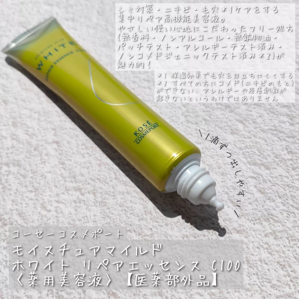 今までビタミンC美容液などは避けてきました。肌荒れやトラブルが怖かったので。🥺でも、そうも言ってられない部分的なシミが気になるんです💦😩薄肌敏感乾燥の私が選んだのはこちら🖐️モイスチュアマイルドホワイトリペアエッセンスC100薬用美容液医薬部...
