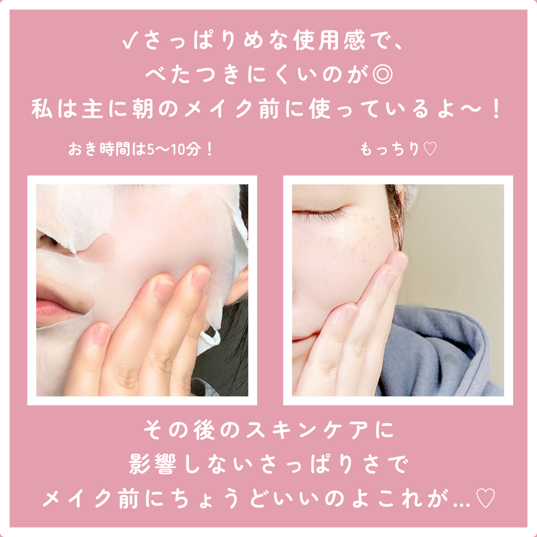 | やわらかい感触のシート♪ たっぷりの化粧水が含まれているのが分かるくらい うるうるしています😊 | 詳細を見る | |
