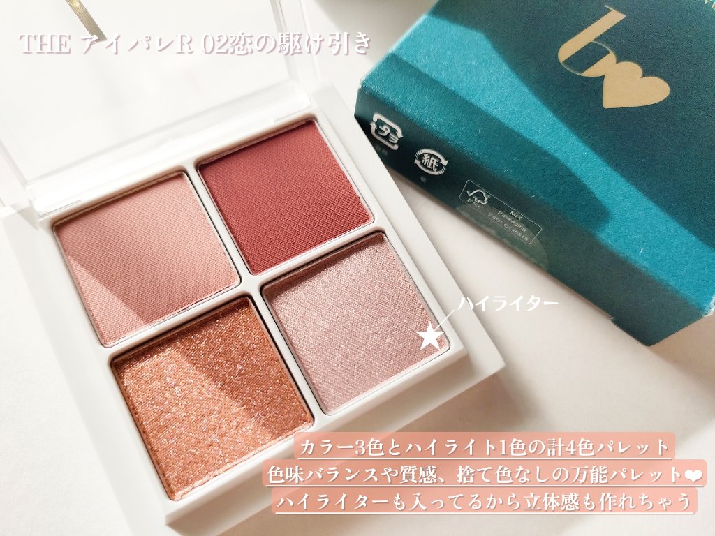 - 魔法の4色で印象的な目元に。 きらめきシャドウ×ハイライター あらゆるアイシャドウパレットを試してきた吉田朱里がたどり着いたのは“カラー3色+ハイライト”の4色パレット。 質感の異なるきらめきパウダーと、こだわりの配色で視線をひきつける印象的な目元へ。 立体感をつくるツヤ増しハイライター入り。 細部まで計算されたベストパレットで、一気にアイドル級の目力を演出します。 ※チップ・鏡はついておりません。 ※2023/3/31 リニューアル