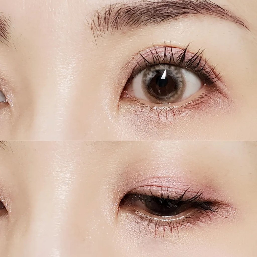 なんとなくだけど左側がブルベ寄り、右側がイエベ寄りの色味でニュートラルなパレットかなと思いました。 目元写真みると発色薄く見えるかなとおもいますが朝メイクして、直さず夜に撮ったのでこんな感じです。 カラコンはmimucoのブラウンフォンデュミムコのカラコンはどれも自然でかわいいです。