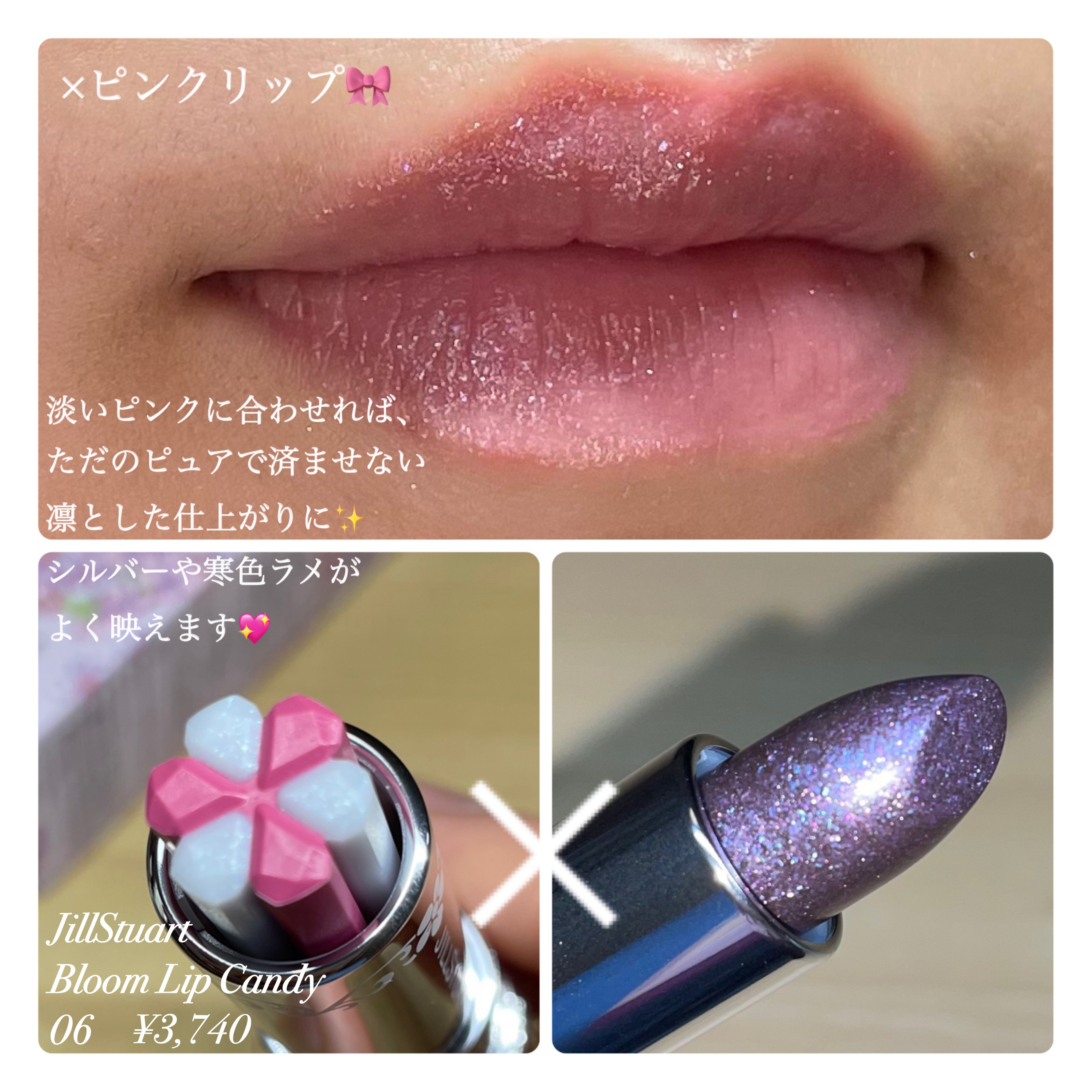 パンチのあるビジュ!目を惹く大粒ラメ! ブラックというよりもシアーパープル寄りのお色味で、 唇に乗せても浮かずにデイリー使いが出来ちゃいます✨ この1本で何通りも印象の違うメイクができます…! 暗めパープル寄りのお色味なので、 淡いブラウンやピンクなどの少し明るめな アイシャドウに合うかと思います!👀 マスクがだんだんと取れるようになり、 夏に近づいてリップメイクが映える時期☀️