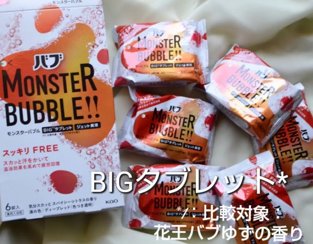 花王さまからいただきましたバブモンスターバブル スッキリFREE袋から取り出すとドーンとBIGなタブレット💥強炭酸で、しゅわしゅわと溶けていく様子を眺めるのもリフレッシュタイムになり、癒されます😌♨️素敵なディープレッドの色のお湯とスパイシー...