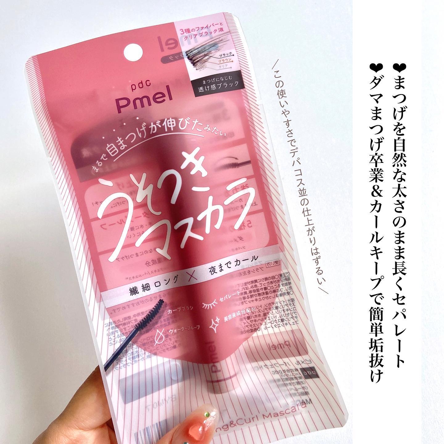 - "さっと仕込んで 私らしさ引き出す ピメルではじける あなただけの魅力"。 繊細ロング×長時間カール、まるで自まつげが伸びたみたい!"うそつきマスカラ"。 さっとひと塗りで、ナチュラルだけど目ヂカラUPを演出するまつげになじむ「透け感ブラック」。 肌馴染みが良くさらに軽やかな「透け感ブラウン」。 大人可愛い限定色「透け感モーヴピンク」。 印象的でおしゃれな限定色「透け感ナイトグリーン」。 重ねてもダマになりにくいセパレート仕上げでしっかりカールキープ。 綺麗なまつげが続く、ウォータープルーフ。