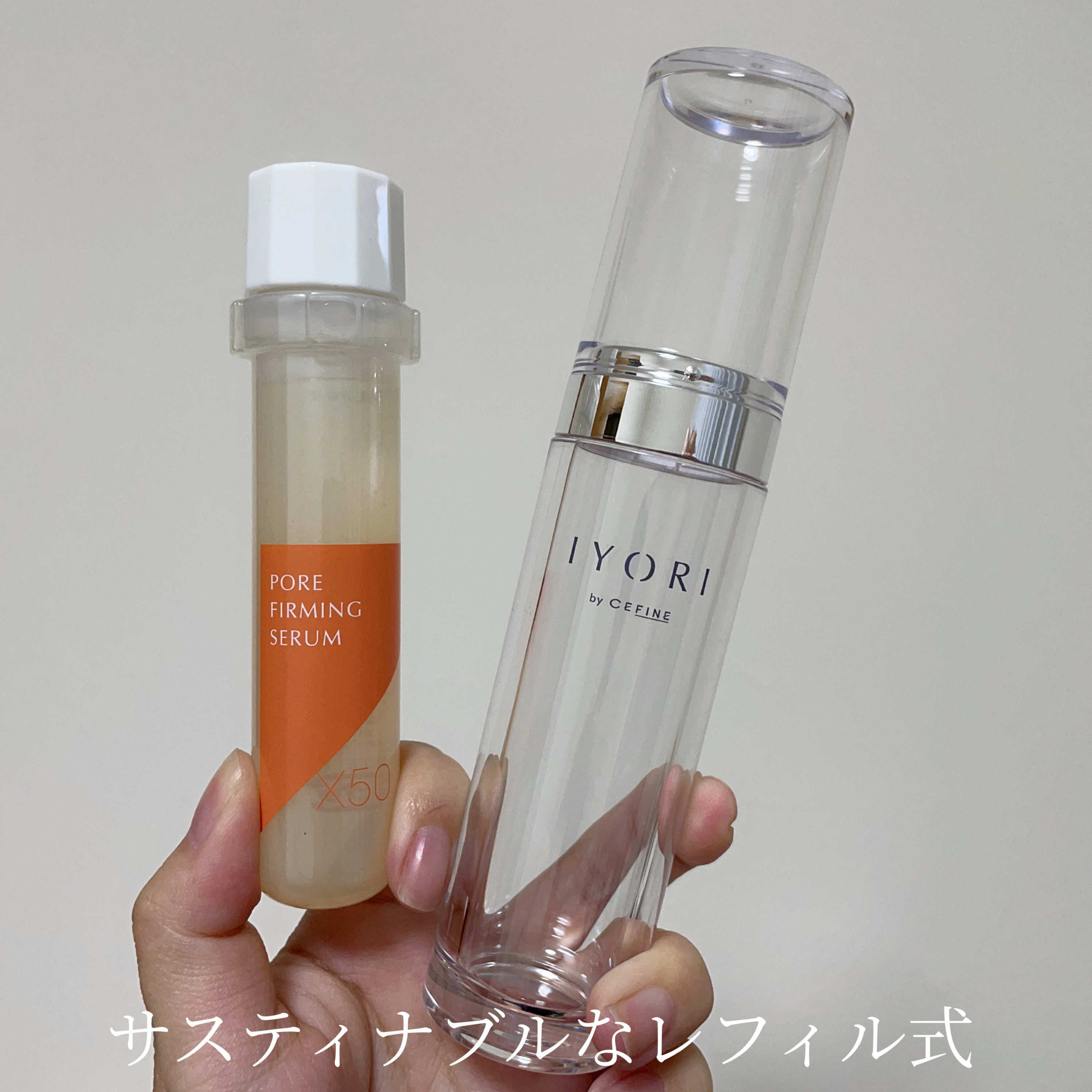 このファーミングセラム X50は、毛穴管理のために生まれた高濃度美容液。 ジェルは、透明で無香料。みずみずしく、緩めで軽い。 けど、このみずみずしいジェルの中に「Mペプチド-X50(※1)」を高濃度で配合してるよ。 実際、お肌にぴたっとくっついて乾燥を和らげてくれているように感じる。 私の場合、毛穴って、乾燥したら開くから毛穴へのアプローチに期待できそう。 お肌のキメのも整ってくれたら嬉しいな。 セフィーヌの商品は全商品、肌に優しい処方で、中身を使い終わったら、レフィル30だけ交換できるサスティナブルなボトルだよ。 SDGsへの取り組みや環境にも配慮している(動物実験もしてない)ブランドってところも、いいよね。