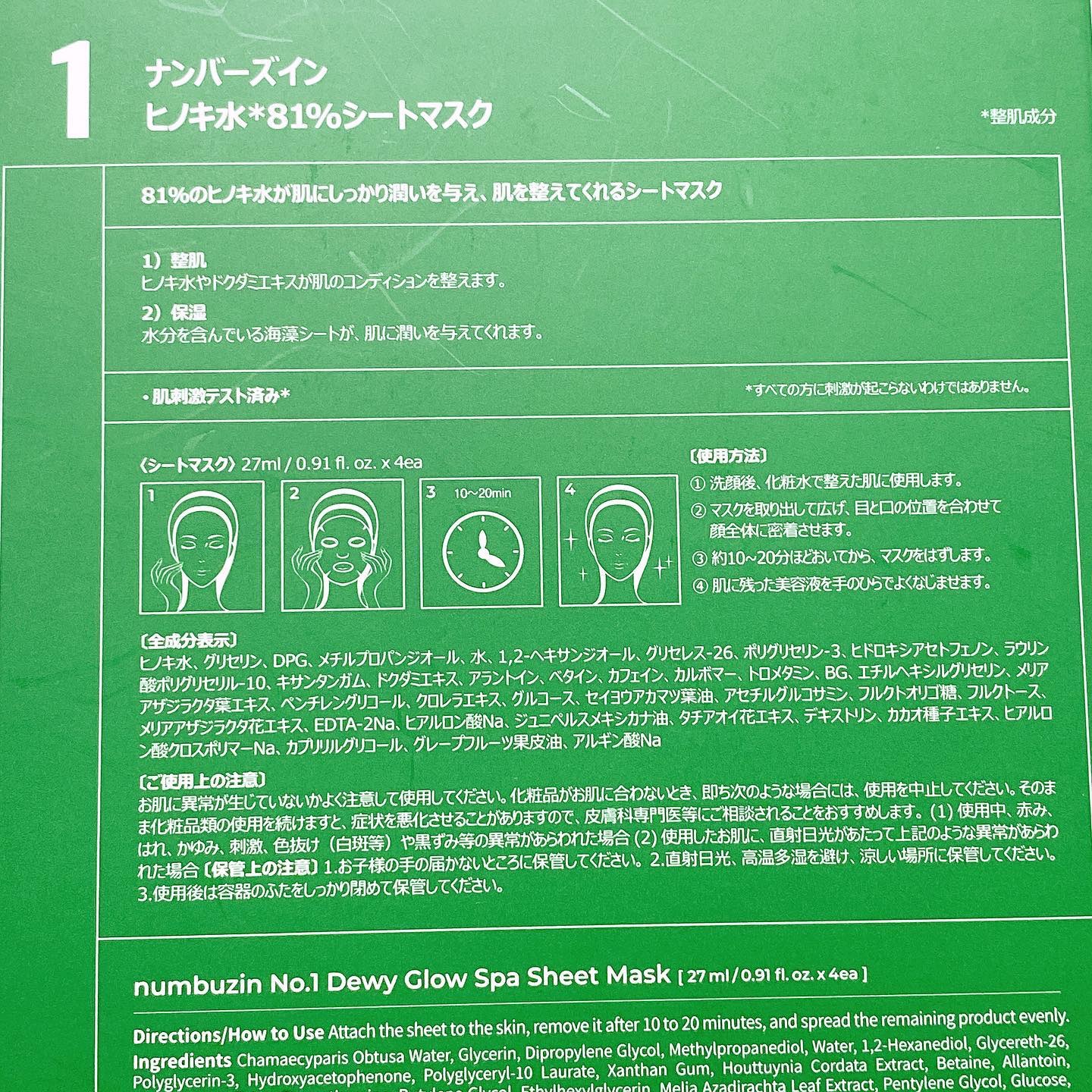 商品詳細情報numbuzin 1番 ヒノキ水81%シートマスク
