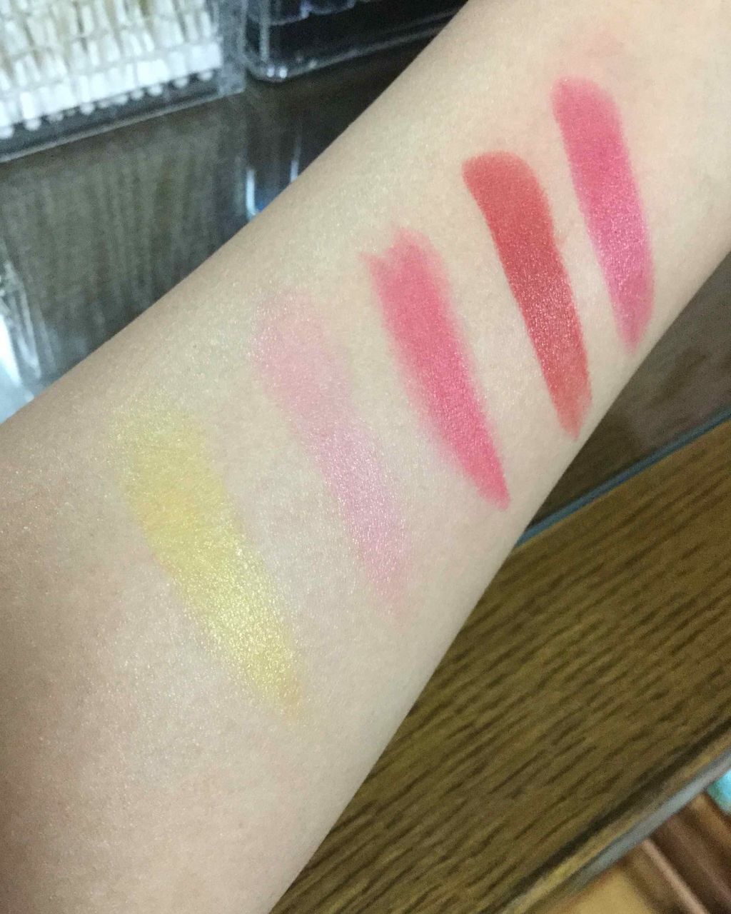 🎇👘mini7月号付録☀️🍉小さくて持ち運びに便利なモバイルコスメのレビューです🤧💕まずはリップから!リップは爪楊枝くらいの大きさです(?)発色がとてもよきです〜👏①マットダスティピンク赤とピンクの間くらいの色で普段使いしやすそうです。発色が...