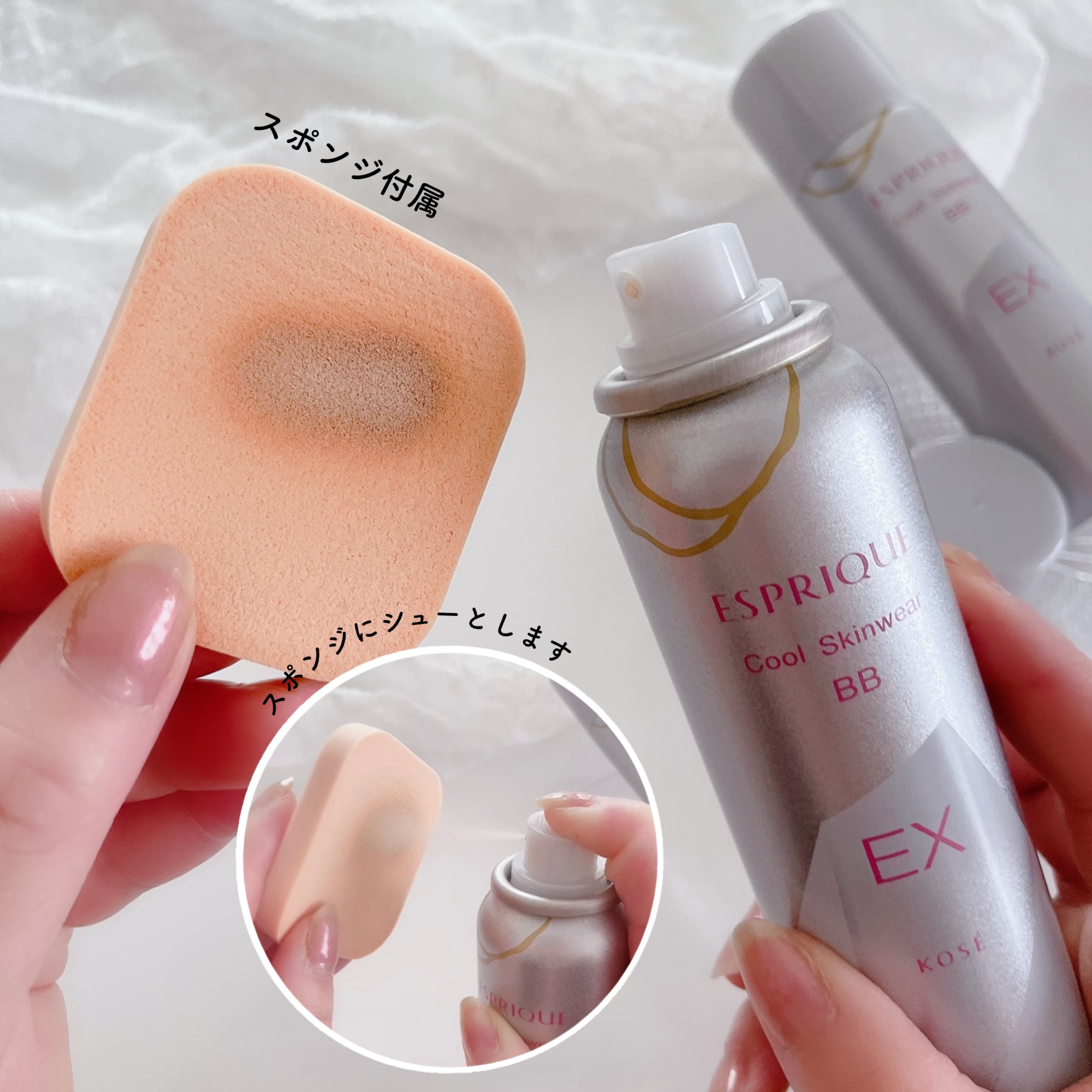 - 限定品 SPF50+ / PA++++ 夏肌を守り抜く「美容液成分」「機能」がパワーアップした、ー5°CタッチのBBスプレー。 毛穴の気になる肌もキュッとひきしめ、毛穴・シミをカバー。毛穴レスで肌悩みのない仕上がりを一日中キープします。 密着力と均一な厚みのある化粧膜で、毛穴を自然にしっかりカバー。 素肌の色でシミ・色ムラをしっかりカバー。 マスクにつきにくく、美しい仕上がりを長時間キープ。 ■ 1品5役(美容液・日やけ止め・化粧下地・ファンデーション・フェイスパウダー) ■ スジやムラができにくく、肌へ均一にしっかりと塗布できる専用スポンジ付き。