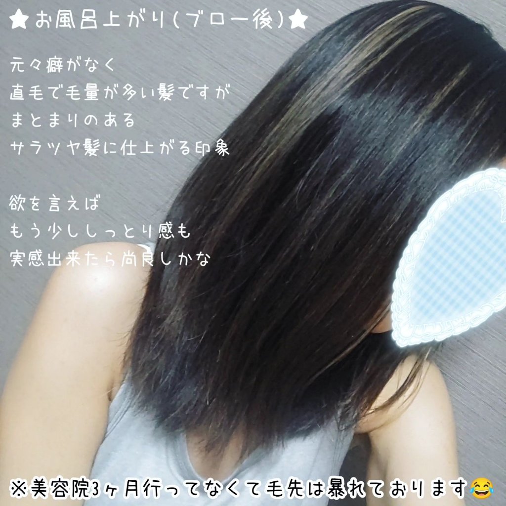 | ヘアケア・スタイリングランキング第182位 | ドライヤーで乾かしてもまとまりが良かったです。髪はしっとりまとまる感じだけど、根元はふんわり。 | 詳細を見る |