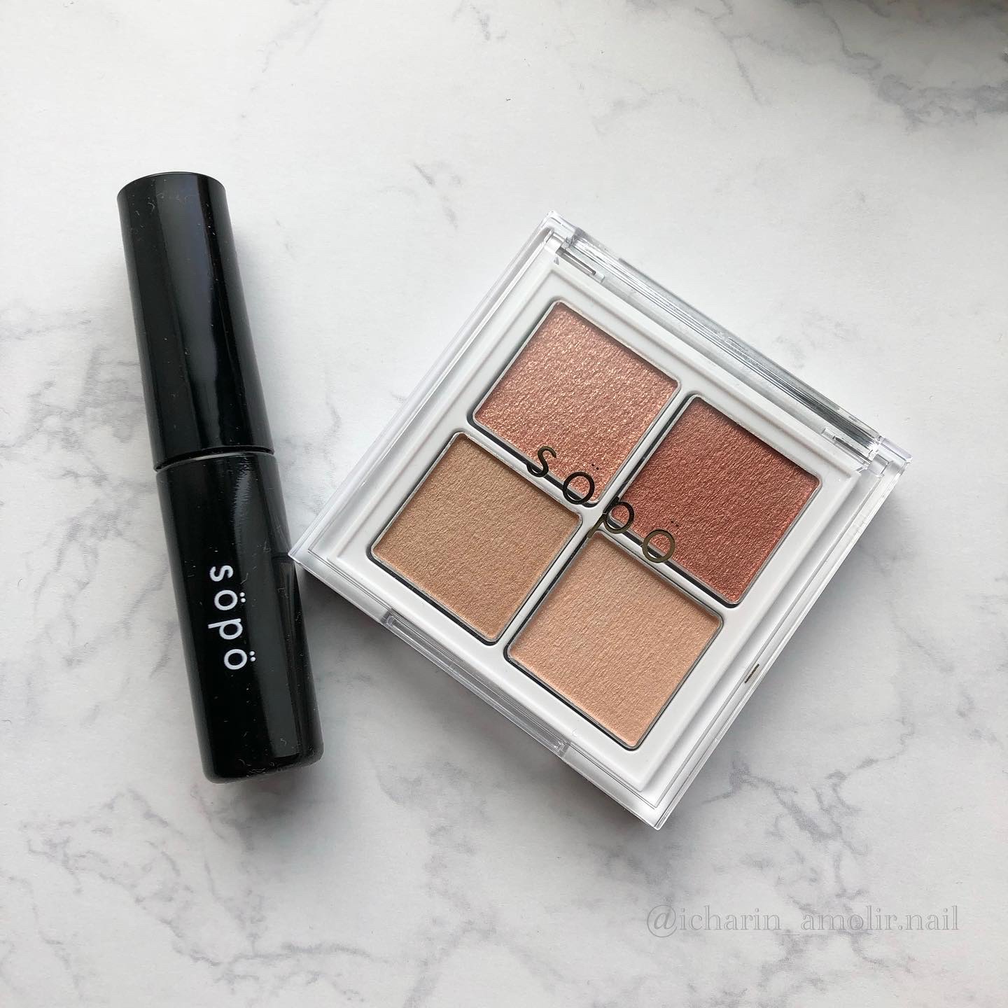 アイパレットは微細なパール感があり、小じわとか年齢肌を目立たせない仕様なのがおススメ! 特に下段の2色をブラシでトントンとブレンディングし、まぶたからCゾーンへ流すことで陰影感のあるチークのような使い方ができます😳❤️ マスカラも黒かブラウンしか使ったことがなかったけどパープルと言うほどどぎつくなくて「ちょっと普通とは違うブラック」って感じでオシャレさが増すアイテムでした🫶 パープルに含まれる青みで目元の透明感とピンク味でなじみ感が出ると思います! 人とは違うこなれ感を出したい方には1000円以下で買えるアイテム必見🫣