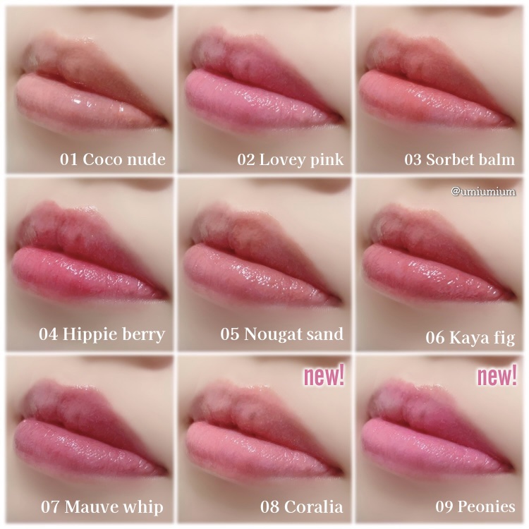 - <01 ココヌード(Coco Nude)> リンゴ酸ジイソステアリル、ダイマージリノール酸ダイマージリノレイルビス(ベヘニル/イソステアリル/フィトステリル)、トリイソステアリン酸ポリグリセリル-2、ビスジグリセリルポリアシルアジペート-2、パラフィン、トリメリト酸トリトリデシル、テトライソステアリン酸ペンタエリスリチル、マイクロクリスタリンワックス、イソステアリン酸ソルビタン、1,2-ヘキサンジオール、ジステアルジモニウムヘクトライト、合成ワックス、酸化チタン、(エチレン/プロピレン)コポリマー、酸化鉄、炭酸プロピレン、香料、赤104(1)、リモネン、リナロール、ホホバ種子油、アーモンド油、アンズ核油、月見草油、オリーブ果実油、アルガニアスピノサ核油、シア脂、ツバキ種子油、トリ(カプリル/カプリン酸)グリセリル、マンゴー果実エキス、カニナバラ果実エキス <02 ラヴィーピンク(Lovey Pink)> リンゴ酸ジイソステアリル、ダイマージリノール酸ダイマージリノレイルビス(ベヘニル/イソステアリル/フィトステリル)、トリイソステアリン酸ポリグリセリル-2、ビスジグリセリルポリアシルアジペート-2、パラフィン、トリメリト酸トリトリデシル、テトライソステアリン酸ペンタエリスリチル、マイクロクリスタリンワックス、イソステアリン酸ソルビタン、1,2-ヘキサンジオール、ジステアルジモニウムヘクトライト、合成ワックス、酸化チタン、(エチレン/プロピレン)コポリマー、赤104(1)、黄5、炭酸プロピレン、赤202、香料、リモネン、リナロール、ホホバ種子油、アーモンド油、アンズ核油、月見草油、オリーブ果実油、アルガニアスピノサ核油、シア脂、ツバキ種子油、トリ(カプリル/カプリン酸)グリセリル、マンゴー果実エキス、カニナバラ果実エキス <03 ソルベバーム(Sorbet Balm)> リンゴ酸ジイソステアリル、ダイマージリノール酸ダイマージリノレイルビス(ベヘニル/イソステアリル/フィトステリル)、トリイソステアリン酸ポリグリセリル-2、ビスジグリセリルポリアシルアジペート-2、パラフィン、トリメリト酸トリトリデシル、テトライソステアリン酸ペンタエリスリチル、マイクロクリスタリンワックス、イソステアリン酸ソルビタン、1,2-ヘキサンジオール、ジステアルジモニウムヘクトライト、合成ワックス、酸化チタン、赤104(1)、(エチレン/プロピレン)コポリマー、酸化鉄、黄5、炭酸プロピレン、香料、リモネン、リナロール、アルガニアスピノサ核油、シア脂、ツバキ種子油、トリ(カプリル/カプリン酸)グリセリル、アーモンド油、アンズ核油、月見草油、オリーブ果実油、ホホバ種子油、マンゴー果実エキス、カニナバラ果実エキス <04 ヒッピーベリー(Hippie Berry)> リンゴ酸ジイソステアリル、ダイマージリノール酸ダイマージリノレイルビス(ベヘニル/イソステアリル/フィトステリル)、トリイソステアリン酸ポリグリセリル-2、ビスジグリセリルポリアシルアジペート-2、パラフィン、トリメリト酸トリトリデシル、テトライソステアリン酸ペンタエリスリチル、マイクロクリスタリンワックス、イソステアリン酸ソルビタン、1,2-ヘキサンジオール、ジステアルジモニウムヘクトライト、合成ワックス、赤104(1)、黄5、(エチレン/プロピレン)コポリマー、赤202、炭酸プロピレン、酸化鉄、酸化チタン、香料、リモネン、リナロール、ホホバ種子油、アーモンド油、アンズ核油、月見草油、オリーブ果実油、アルガニアスピノサ核油、シア脂、ツバキ種子油、トリ(カプリル/カプリン酸)グリセリル、カニナバラ果実エキス、マンゴー果実エキス <05 ヌガーサンド(Nougat Sand)> リンゴ酸ジイソステアリル、ダイマージリノール酸ダイマージリノレイルビス(ベヘニル/イソステアリル/フィトステリル)、トリイソステアリン酸ポリグリセリル-2、ビスジグリセリルポリアシルアジペート-2、パラフィン、トリメリト酸トリトリデシル、テトライソステアリン酸ペンタエリスリチル、マイクロクリスタリンワックス、イソステアリン酸ソルビタン、酸化チタン、1,2-ヘキサンジオール、ジステアルジモニウムヘクトライト、合成ワックス、黄4、(エチレン/プロピレン)コポリマー、酸化鉄、炭酸プロピレン、赤202、香料、リモネン、青1、リナロール、シア脂、ツバキ種子油、トリ(カプリル/カプリン酸)グリセリル、アルガニアスピノサ核油、ホホバ種子油、アーモンド油、アンズ核油、月見草油、オリーブ果実油、マンゴー果実エキス、カニナバラ果実エキス <06 カヤフィグ(Kaya Fig)> リンゴ酸ジイソステアリル、ダイマージリノール酸ダイマージリノレイルビス(ベヘニル/イソステアリル/フィトステリル)、トリイソステアリン酸ポリグリセリル-2、ビスジグリセリルポリアシルアジペート-2、パラフィン、トリメリト酸トリトリデシル、テトライソステアリン酸ペンタエリスリチル、マイクロクリスタリンワックス、イソステアリン酸ソルビタン、1,2-ヘキサンジオール、酸化チタン、ジステアルジモニウムヘク