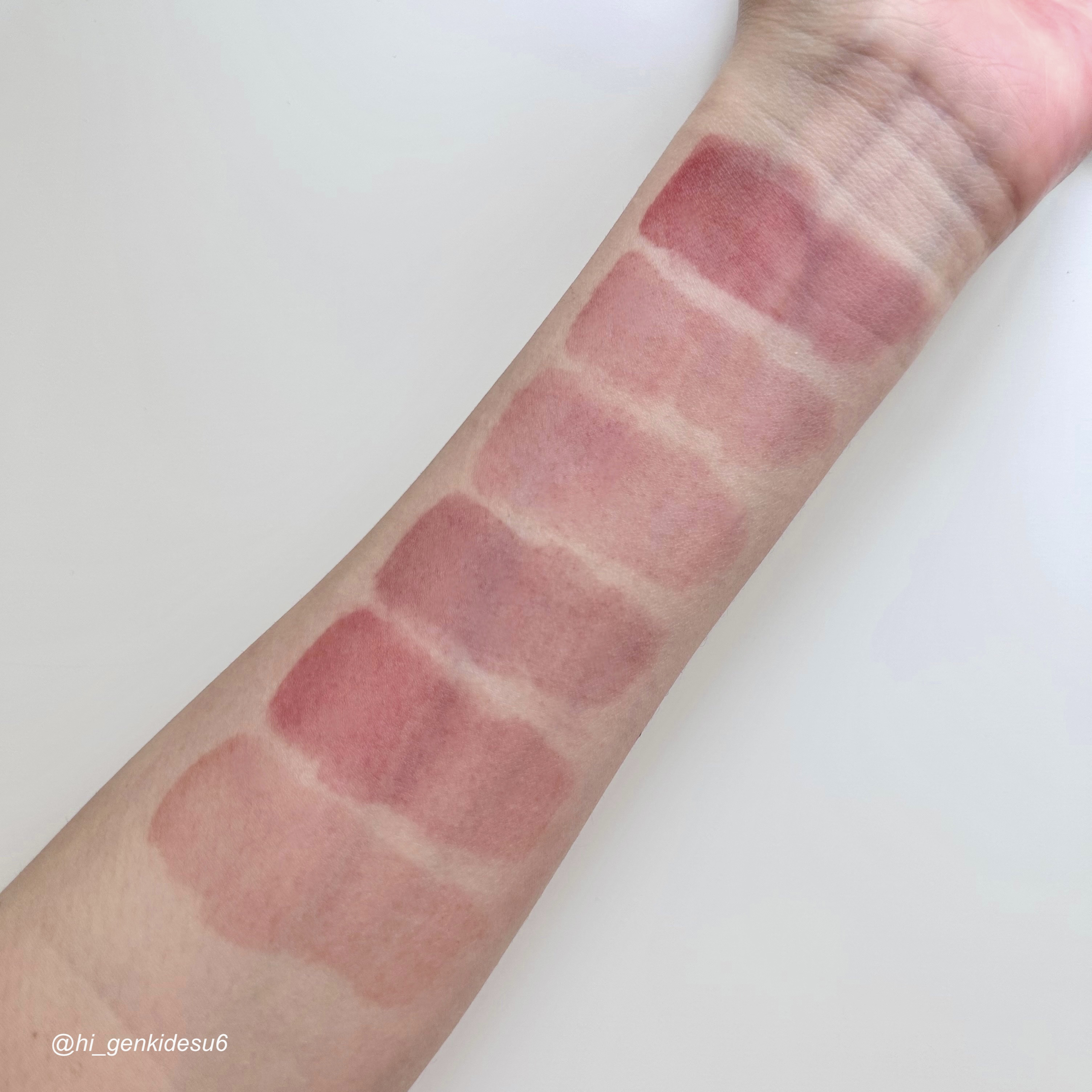 ぬるい温度のヌーディローズ。落ち着いた独特の雰囲気。公式写真だと青み寄りのローズピンクに見えましたが、私の肌だとアプリコットオレンジのような発色に。 清楚なラベンダーとミュートピンク。こちらは期待通りのクールトーンカラーでした! 白みのある発色で、塗った箇所がぱっと明るくなります。 簡単に統一感のあるメイクができてとっても優秀。色々な質感を試せますし、マルチに使用できるので1つでかなり活用度が高いパレットだと思います✨️