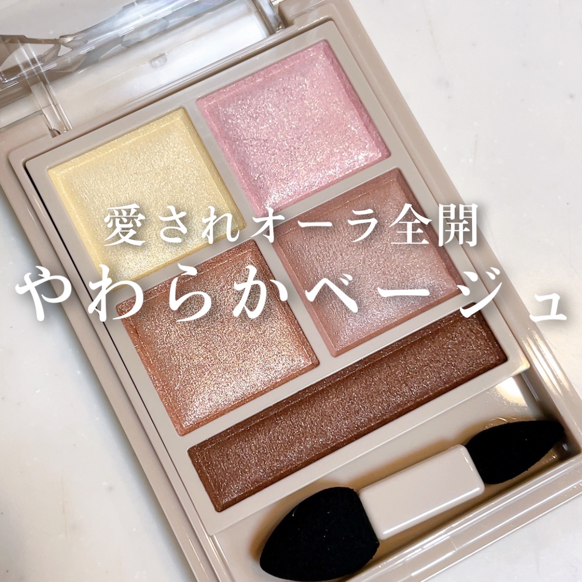 かなりくすみ感強いパレットは ふんわり柔らかい発色で淡い色づき ラメカラーの煌めきの高さ💎꙳⋆ グレイッシュでぱっと見かなり暗めの配色に見えるんだけど ラメがかなり華やかだからこの暗さにこのラメが際立つ✨ くすみ感の強いベージュピンクがマットカラー 発色が良くキラッキラのシャインロゼカラー マーブル模様で見た目も可愛いホワイトパール 締め色はグレーがかった深みのブラウン スウォッチしてみるとシャインロゼカラーは かなりしっかり発色するけど他はふんわり柔らかい発色 このラメが可愛すぎて買っちゃったけど ラメのおかげで沈んで見えない ピンクだけど大人っぽくて 落ち着いた雰囲気になるのも可愛い❤️ いつもの可愛いピンクメイクから ちょっと大人にグレードアップ💓 大人が使いたいピンクパレットだね🎨*°♡