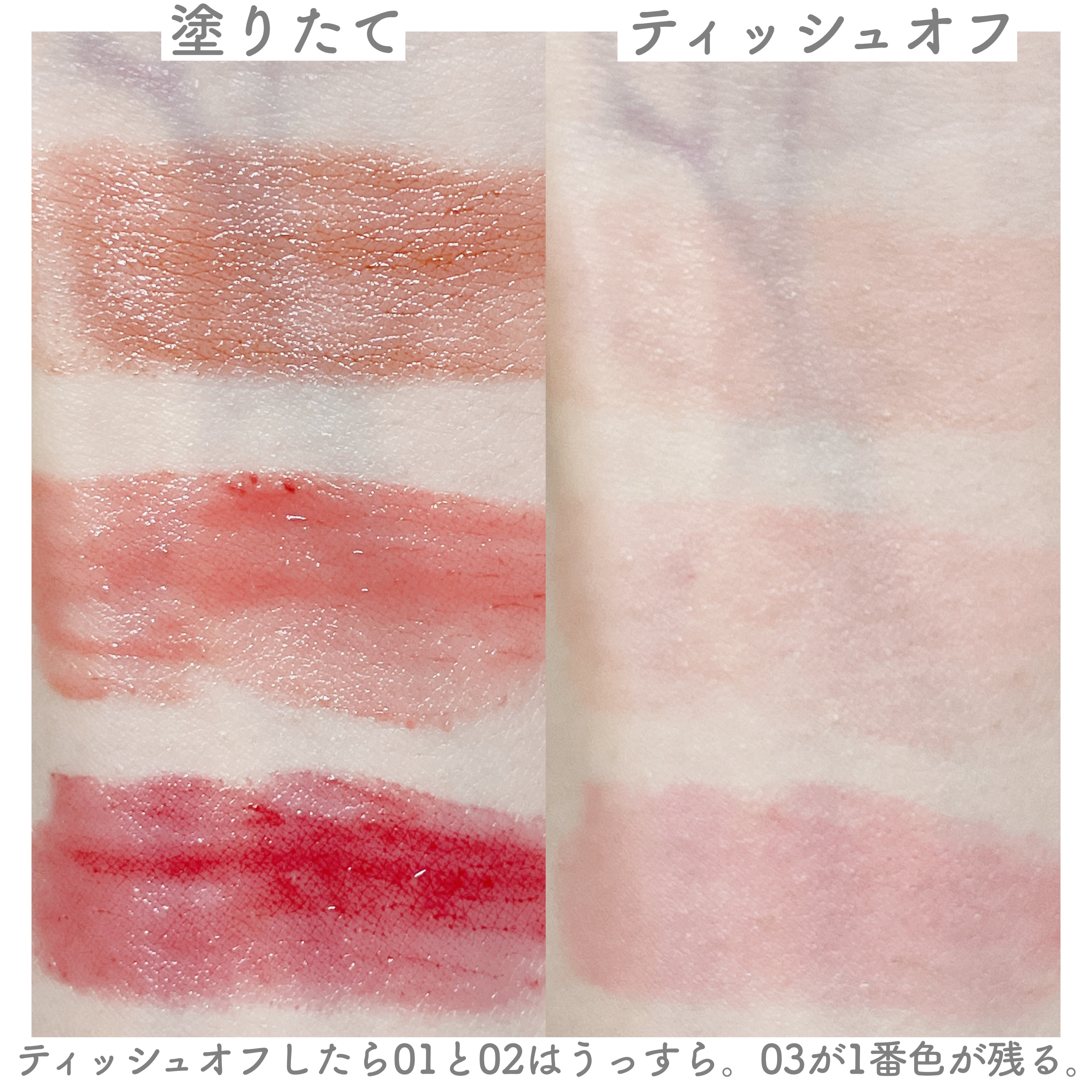 | リップティントランキング第3位 | 重ねて塗っても、ちゅるんと透け感が残って明るめカラーがとっても映える…💕色残りも◎ | 詳細を見る | ||