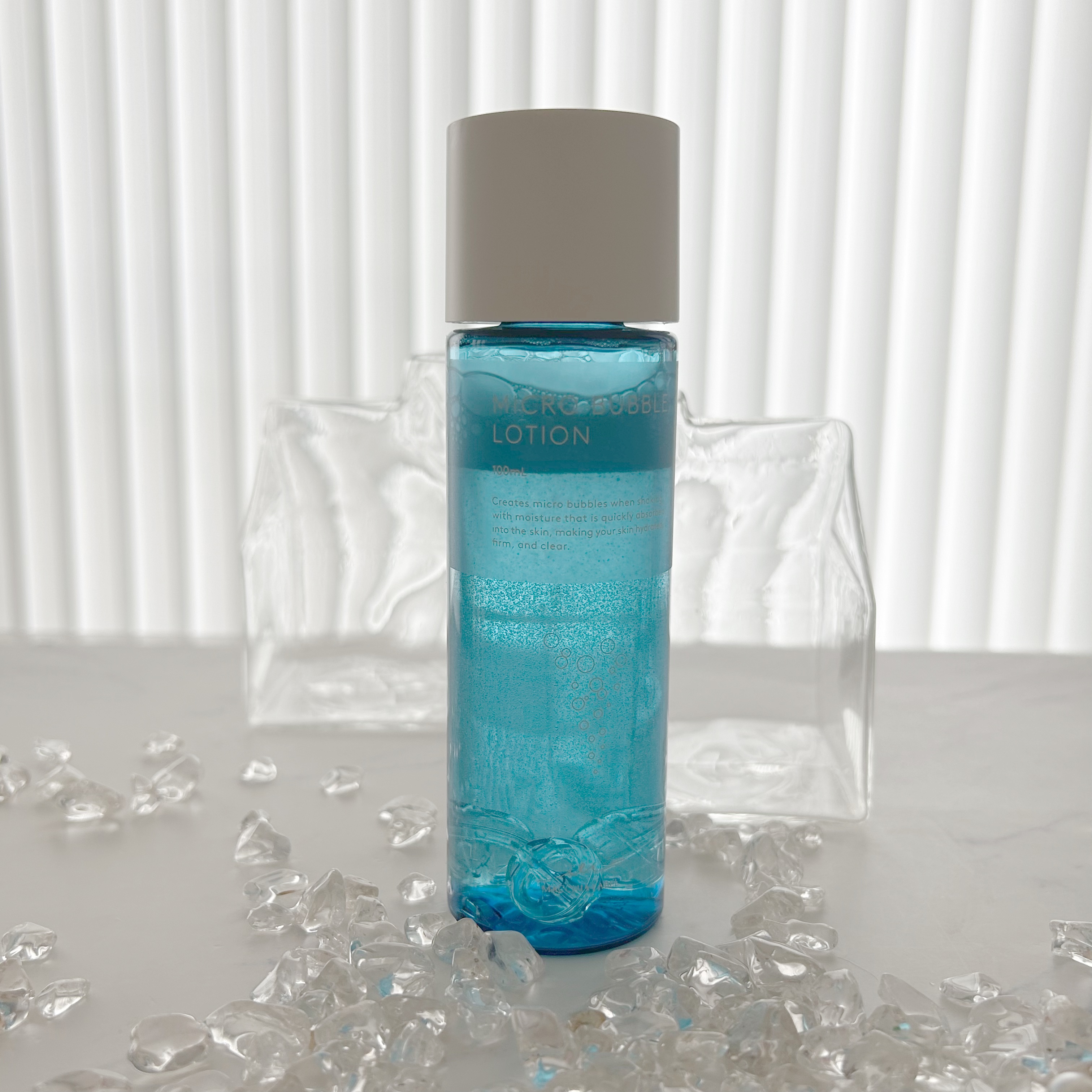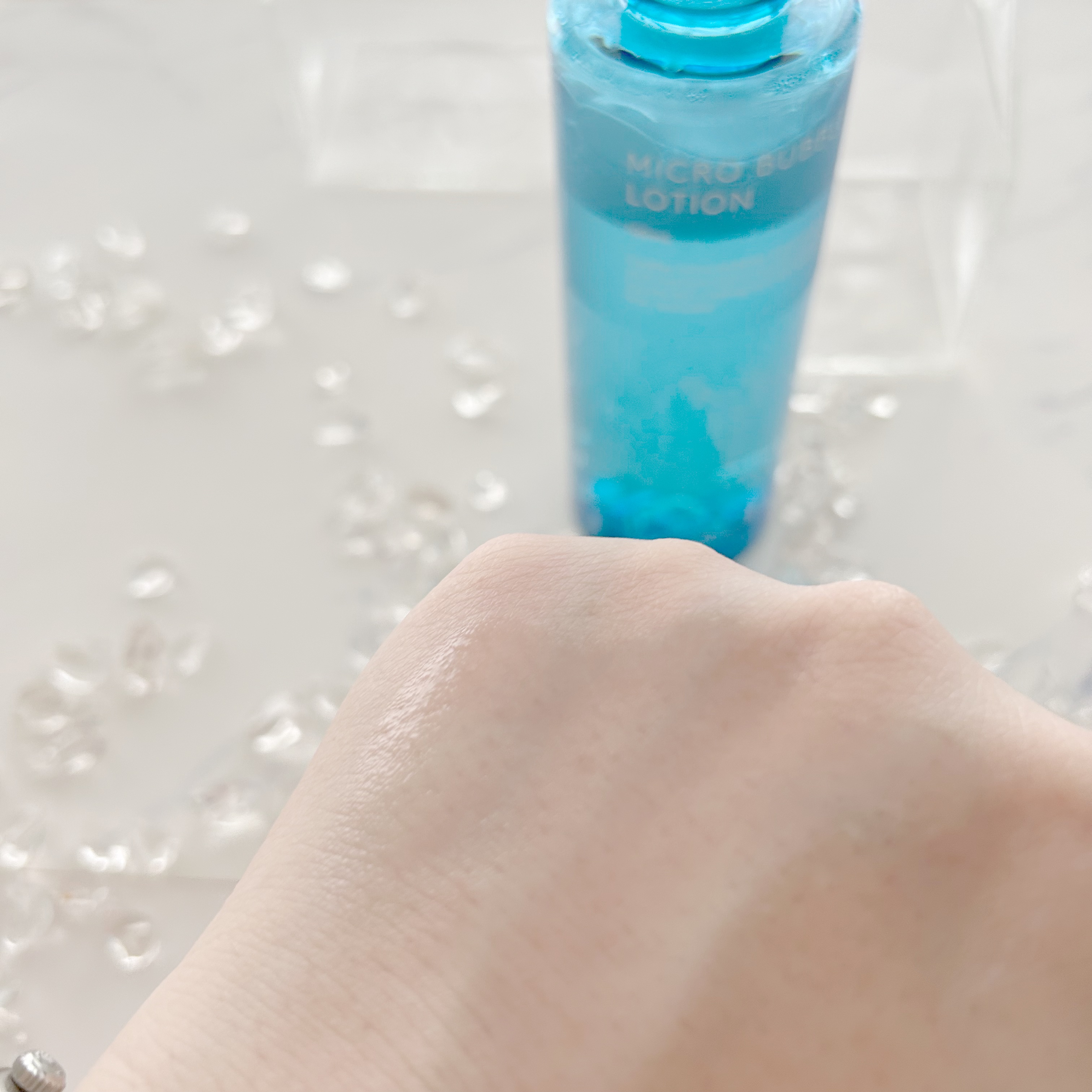 こちらの振ってファインバブルを発生させる日本初の化粧水。中にボールが入ってるのですが、振るとこのボールが微細な泡を発生させるみたいです。 少しとろみのあるテクスチャですがさらっと馴染みがよくて使い心地がいいです◎ 細かな泡とブルーのボトルで見た目も綺麗なところもお気に入りです◎